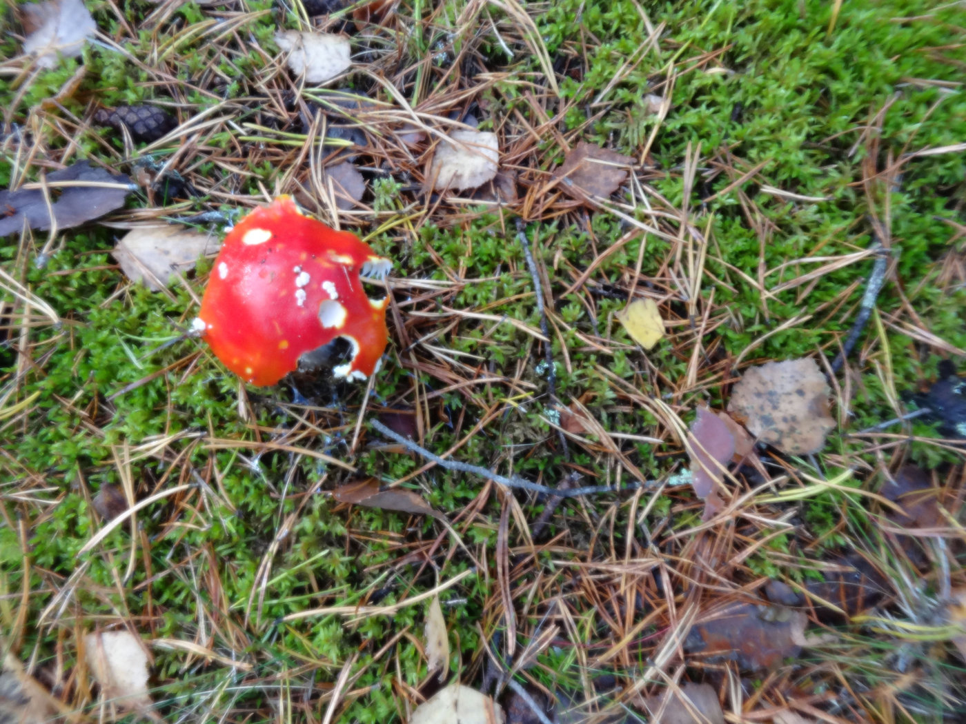 Så utomhus är verkligen bäst. Oavsett årstid och väder, men kanske särskilt en solig höstdag som idag. Och även fast den enda svampen man hittar är oätlig och giftig.