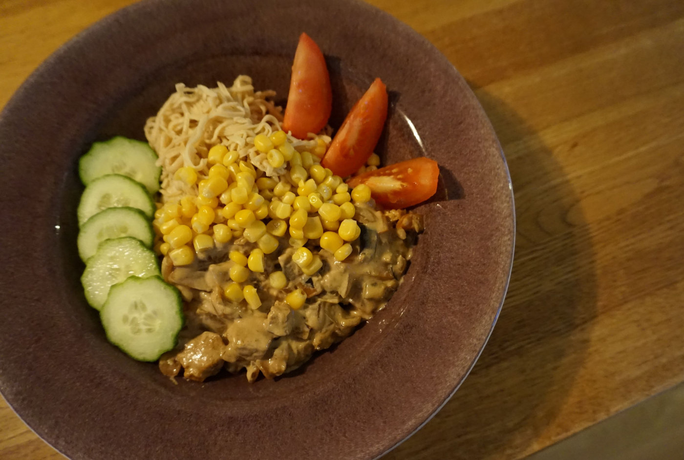 Smaken är helt klart annorlunda mot vanlig pasta av durumvete, men jag gillade det. Här kommer receptet på det vi åt till.