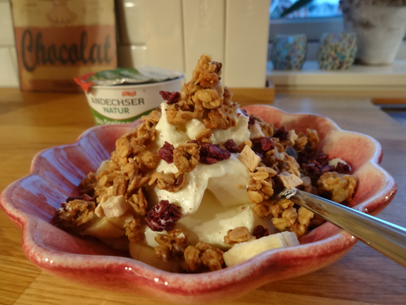 Naturell kvarg med någon frukt och granola smakar väldigt bra och var en frukost för mig tidigare i veckan. Mycket bättre och godare att äta naturell kvarg med färsk frukt eller bär istället för en kvarg smaksatt med detsamma!