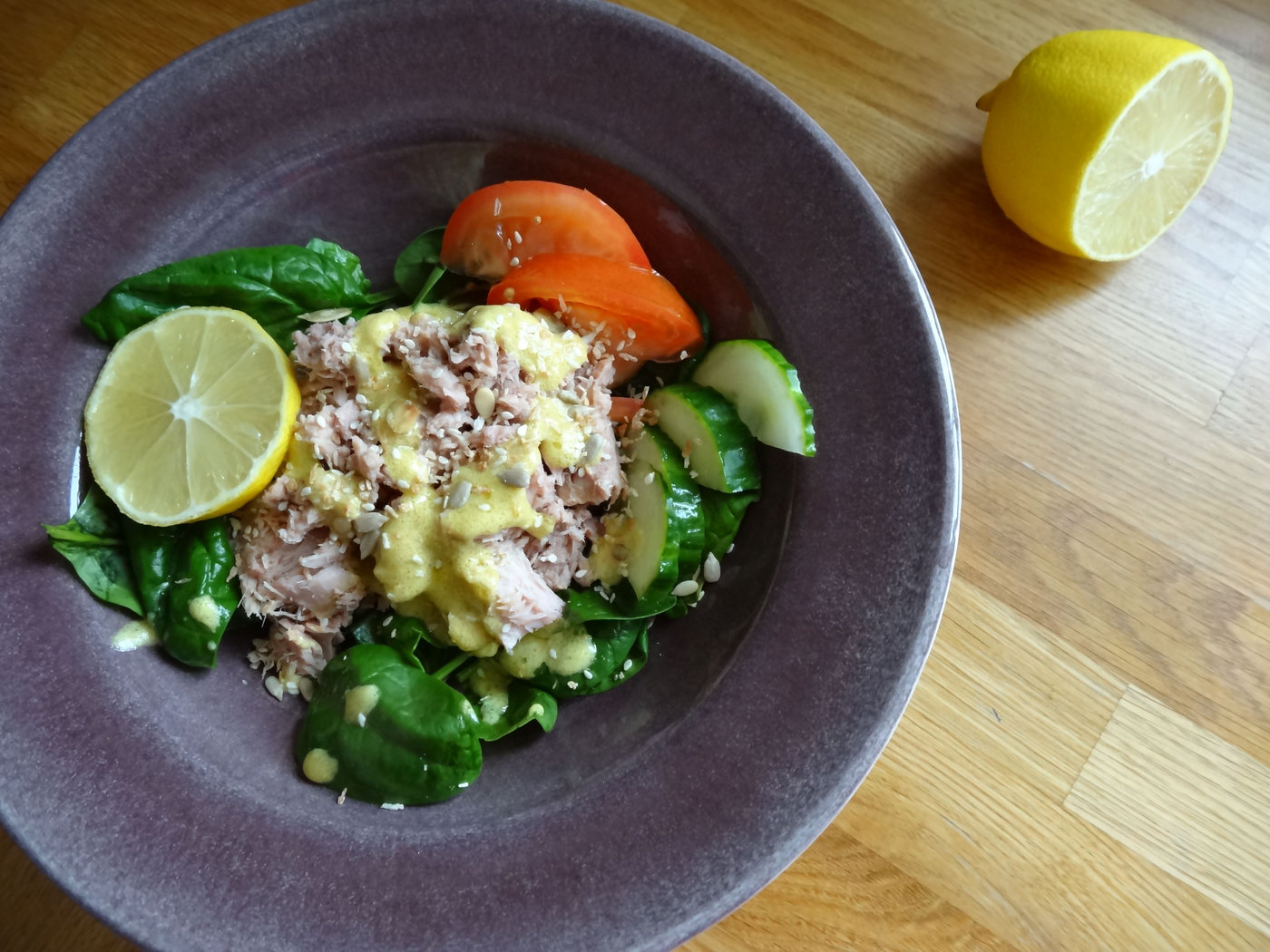 Och vill man att fiskrätten ska gå riktigt snabbt att laga tar man helt enkelt en burk tonfisk och äter den med grönsaker, citron, kokt ägg och en dressing gjord på olja, vinäger och dijonsenap.
