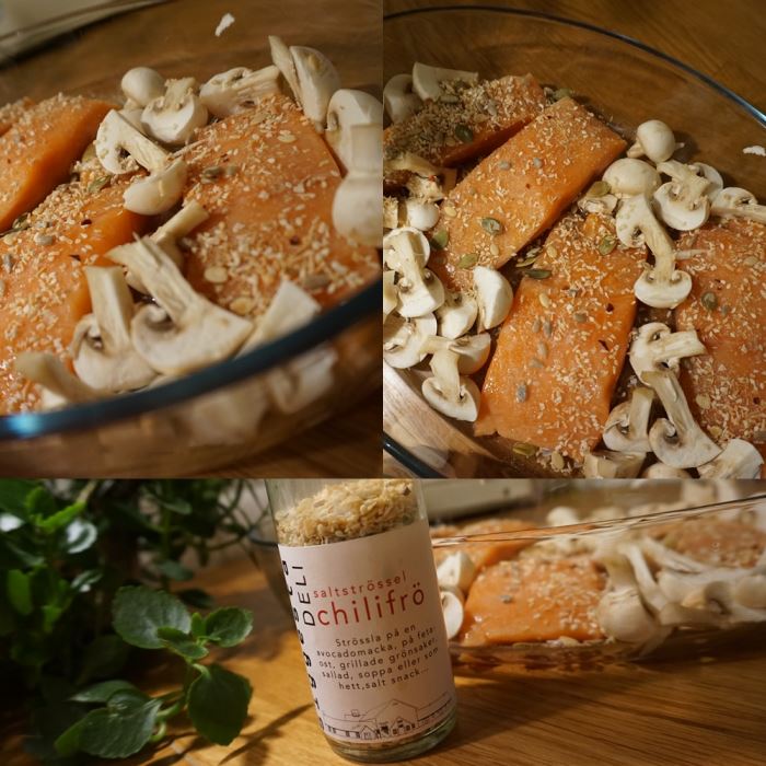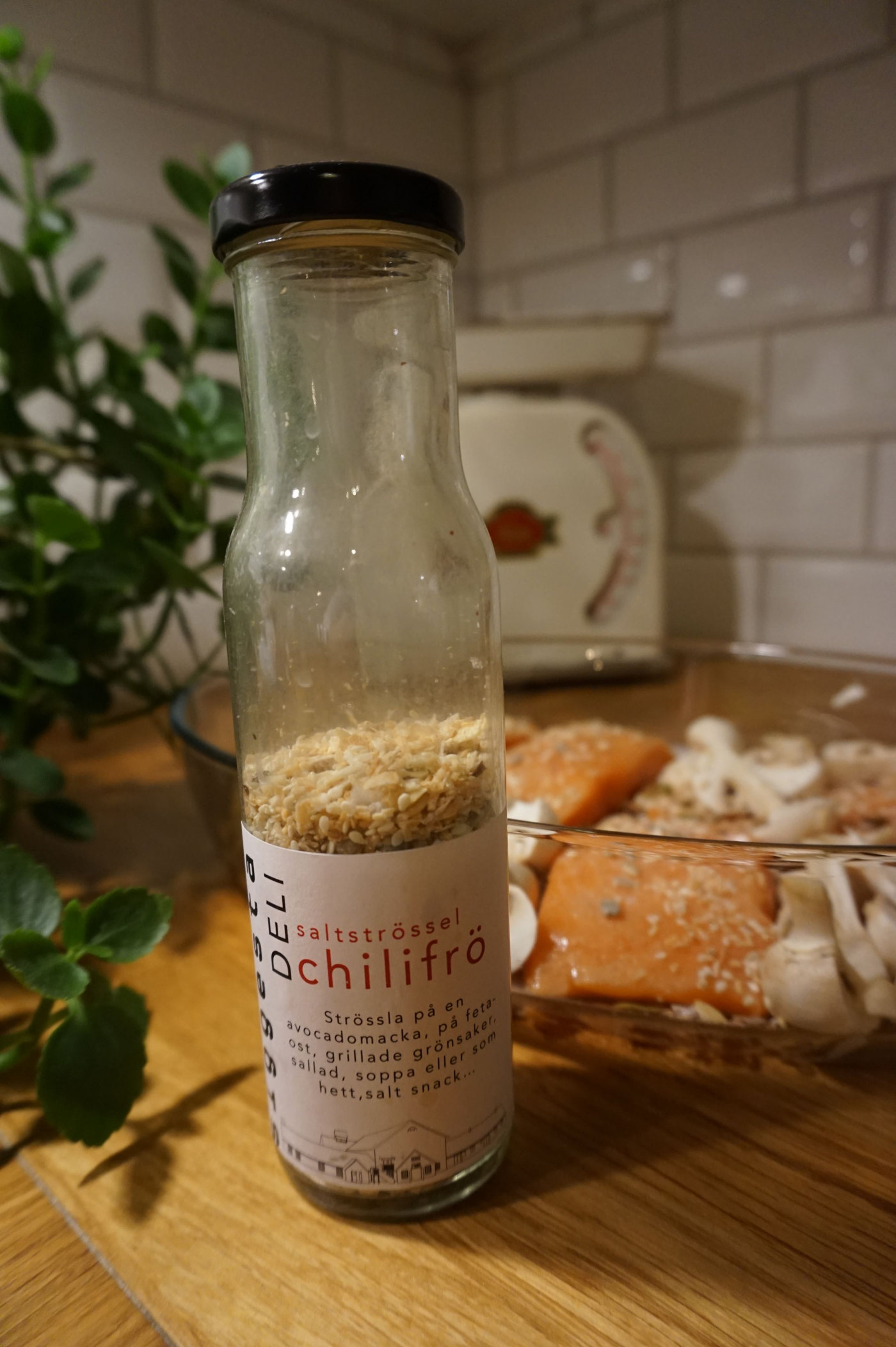 För ett tag sedan fick jag denna salt- och fröblandning från min syster. Super gott att ha på till exempel salladen, köttbiten eller laxen. När vi åt just lax härom kvällen strösslade jag på denna blandning av frön, kokos och flingsalt innan jag skjutsade in allt i ugnen.