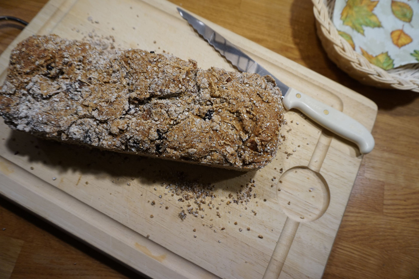 Enda missen jag gjorde vid gårdagens brödbak var att jag inte blandade degen ordentligt. När den var färdiggräddad föll därför vissa av brödskivorna sönder lite grann. Om du ska baka brödet; gör inte den missen som jag gjorde.