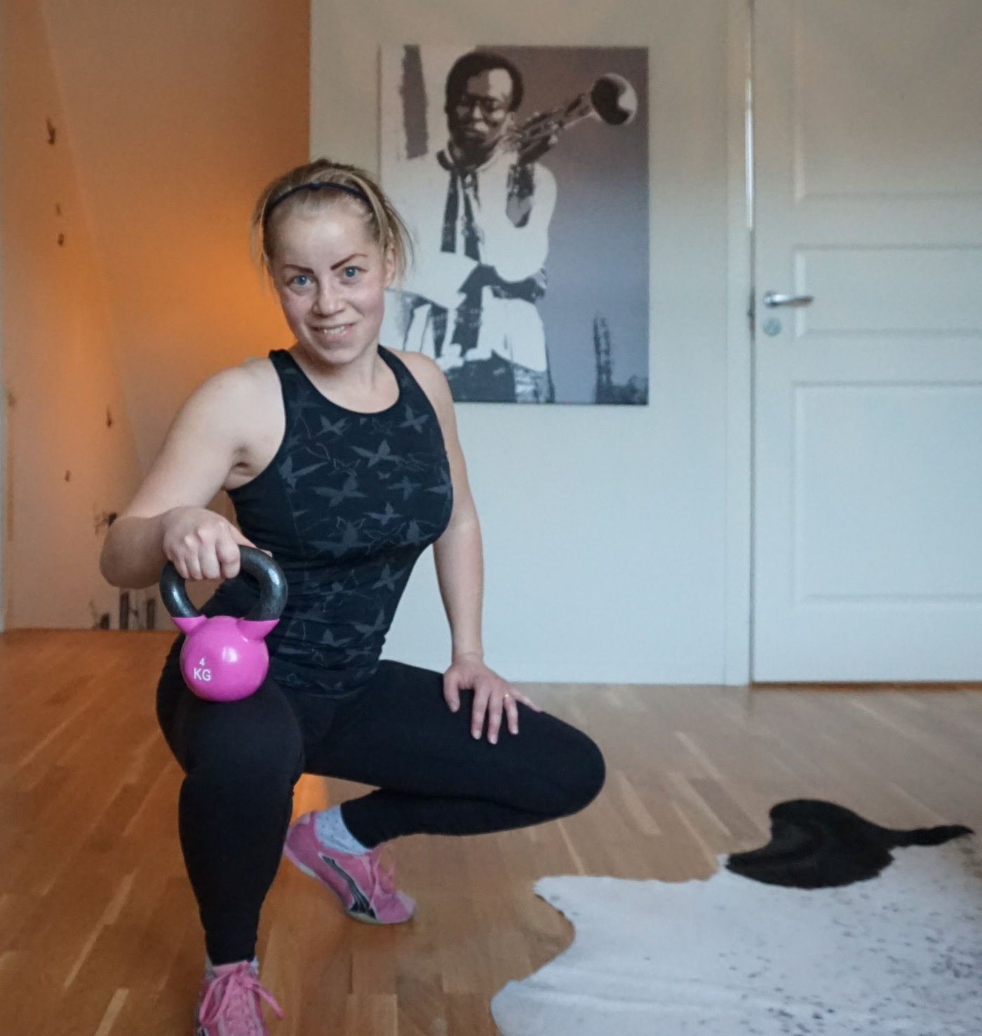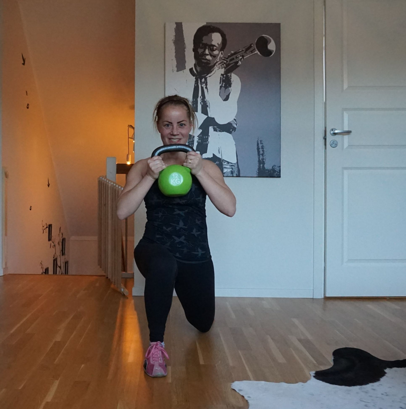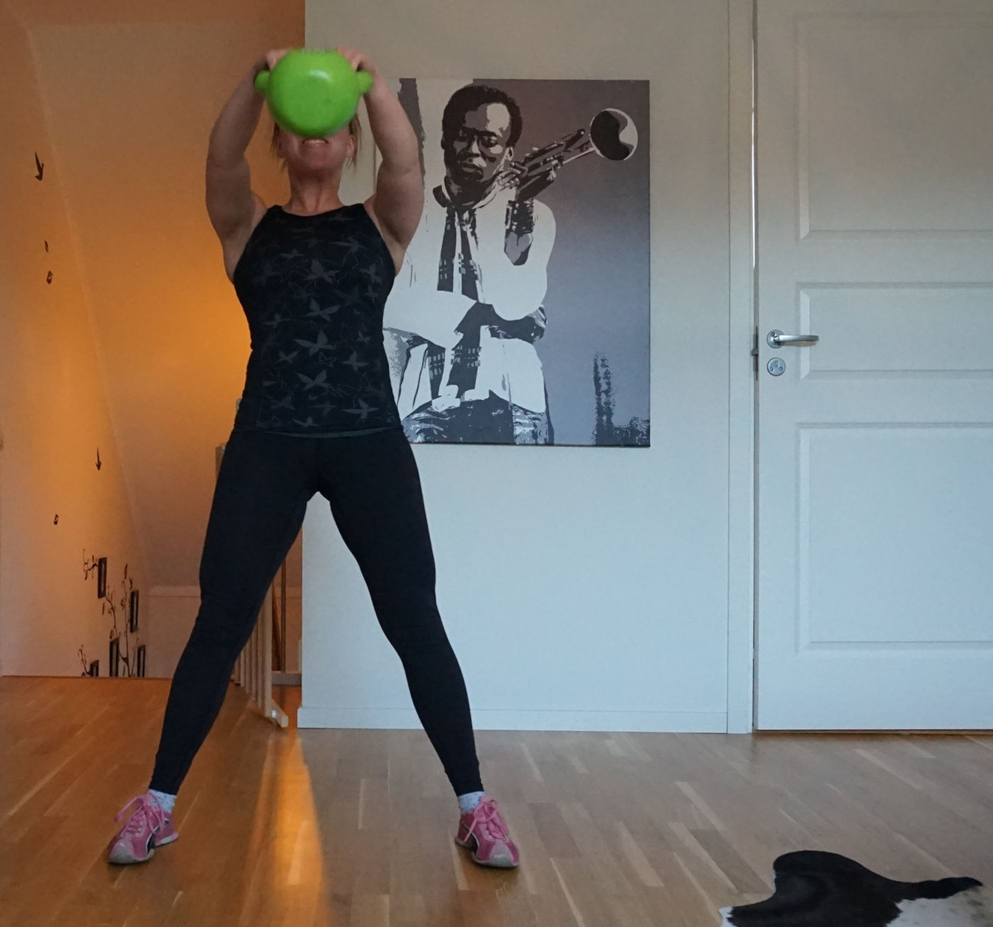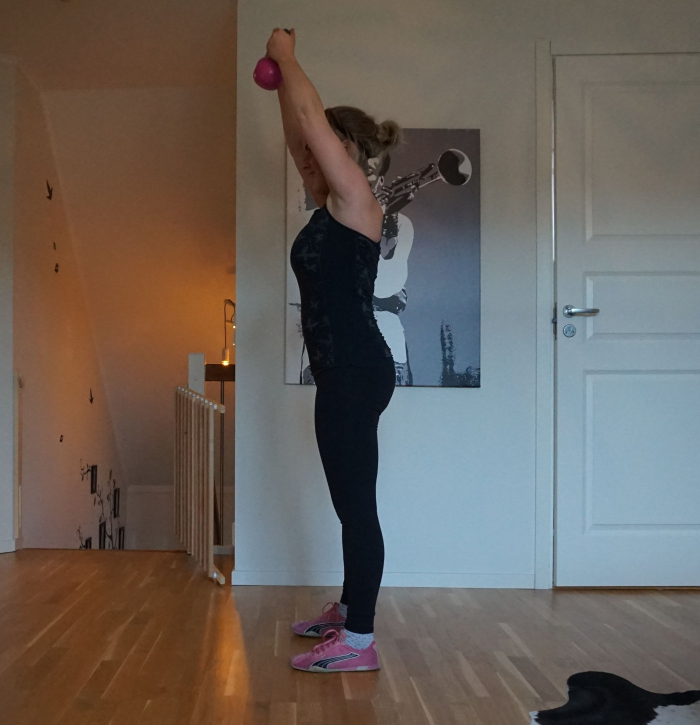 Till lyft med kettlebells ovan huvud valde jag en ganska lätt vikt på den för att orka.