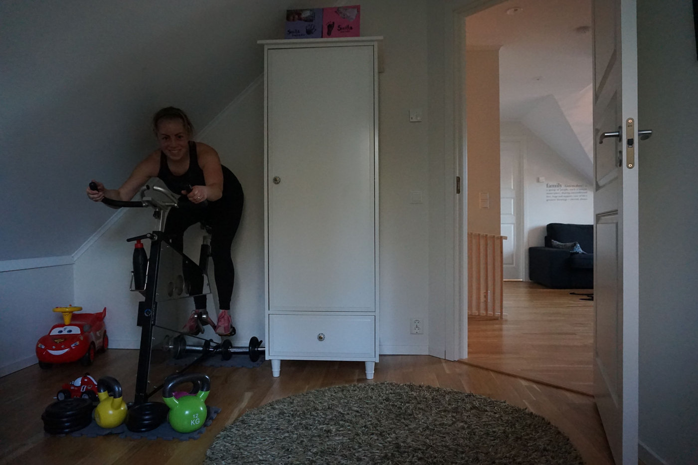 Nu under julledigheten när båda barnen är hemma och mannen dessutom börjat jobba igen så vill jag att mina träningspass ska vara så korta och effektiva som möjligt. Då hinns träningen med medan Smilla sover och Wilmer leker med något. Idag valde jag ut fem olika övningar, som jag tränade i en minut vardera och körde så många varv som jag orkade.