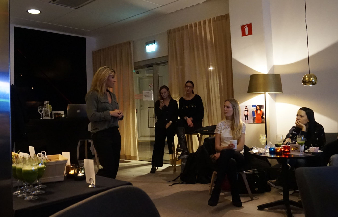 Vi började med ett träningspass, som Sabina höll i. Ett gäng tabataintervaller hann vi med och när vi var klara efter knappa halvtimmen av träning var jag ordentligt svettig och trött i kroppen. Utfallshopp, knäböj med hopp, mountain climbers, thrusters och burpees var de övningar vi gjorde och mer behövs inte för att svetten ska drypa.