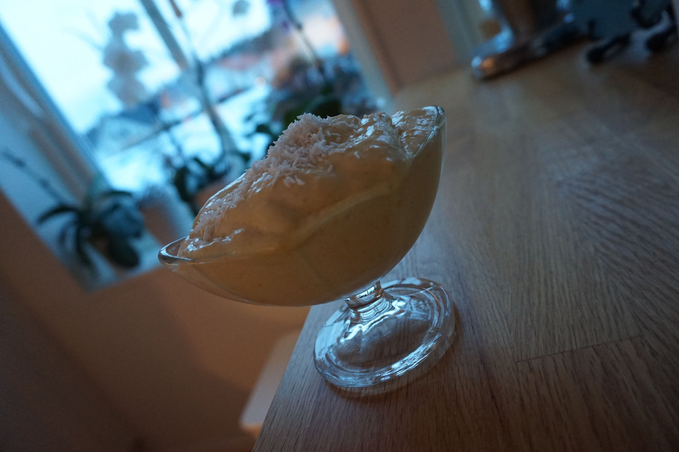 Bara tre ingredienser och hur gott som helst. Att mixa mango med banan och lite kokos är ett enkelt sätt att få till en len och smakrik sorbet. Det var faktiskt första gången jag gjorde mangoglass igår kväll. Och definitivt inte sista gången kan jag säga.