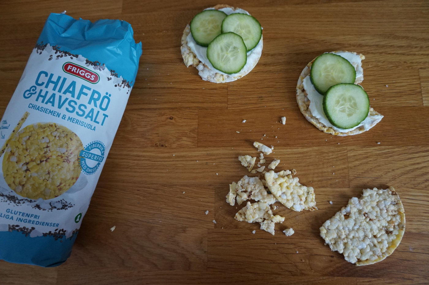 Smaken på dessa riskakor skiljer sig inte nämnvärt från vanliga riskakor, men så innehåller de bara en lite del chiafrö också, närmare bestämt fem procent. Det som jag däremot verkligen gillar med den nya sorten är att den är mycket tunnare. Vanliga riskakor är lite för tjocka, tycker jag, och man behöver kompensera med så mycket pålägg (om man inte äter dem naturella) för att kakan inte ska ”ta över”.