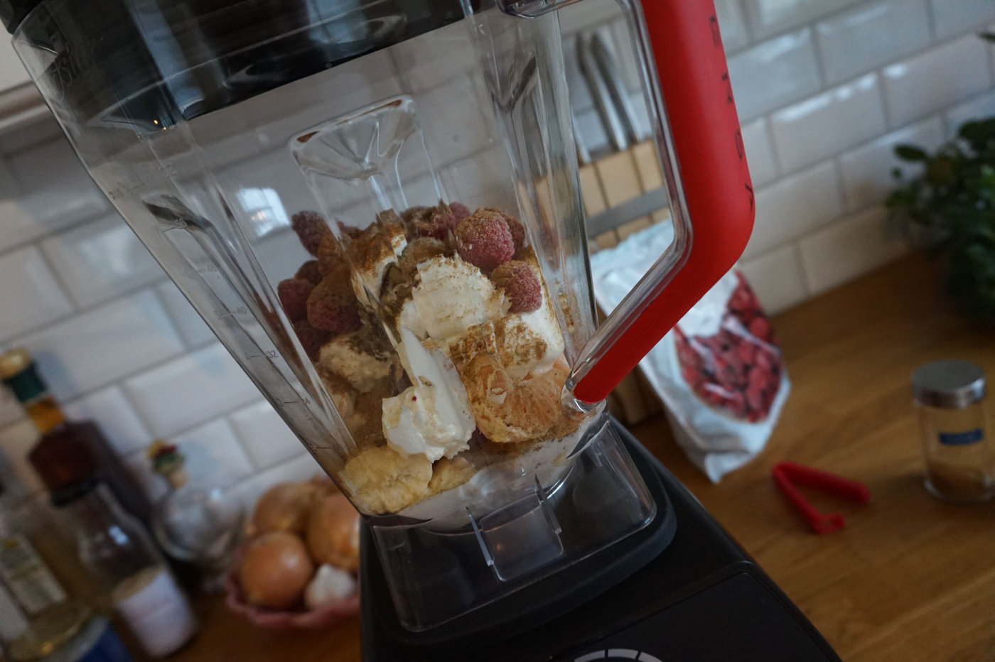 - att jag blandade till en god hallonsmoothie till frukost. I de hade jag allt möjligt gott och dessutom en tesked av det här nyttiga pulvret. Mycket bättre att dricka det i en smoothie än i vatten då man inte kände den äckliga smaken av den alls i smoothien.