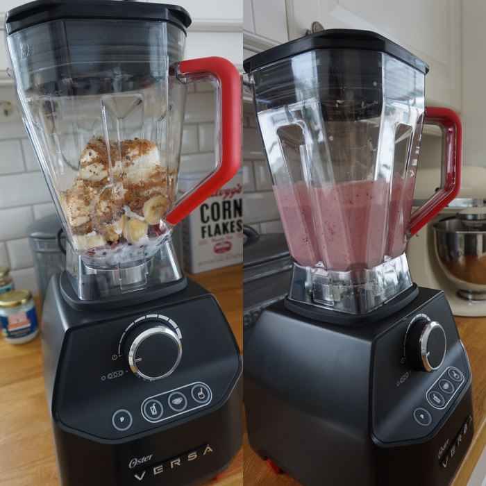Vi har en mixer som gör sitt jobb med att blanda smoothies, soppor och röror bra. Men när jag fick chansen att testa en Oster Versa så tackade jag inte nej. Fick hem den häromdagen och igår invigde jag den med att göra en smoothie till min lunch. Jag kan säga att jag inte är besviken över att jag tackade ja till detta test.
