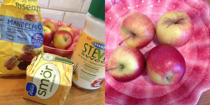 Uppdatering: Jag kan intyga att äppelpajen var god! Tycker fortfarande att vanlig äppelpaj med vetemjöl och socker är snäppet godare, men denna nyttiga variant var helt klart godkänd och ett mycket bra alternativ.