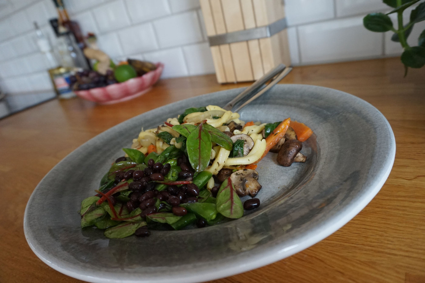 Pastarätten får 4 av 5 möjliga poäng av mig. Den var riktigt god och framför allt var det svampen och det andra som ugnsrostades tillsammans med Västerbottenosten som gav rätten det där lilla extra. Det som drar ner poänget lite är just att jag saknade något slags kött. Det var visserligen en matig sallad med bönor som tillbehör. Men att ha pasta som huvudinnehåll i en måltid är inte riktigt min grej.