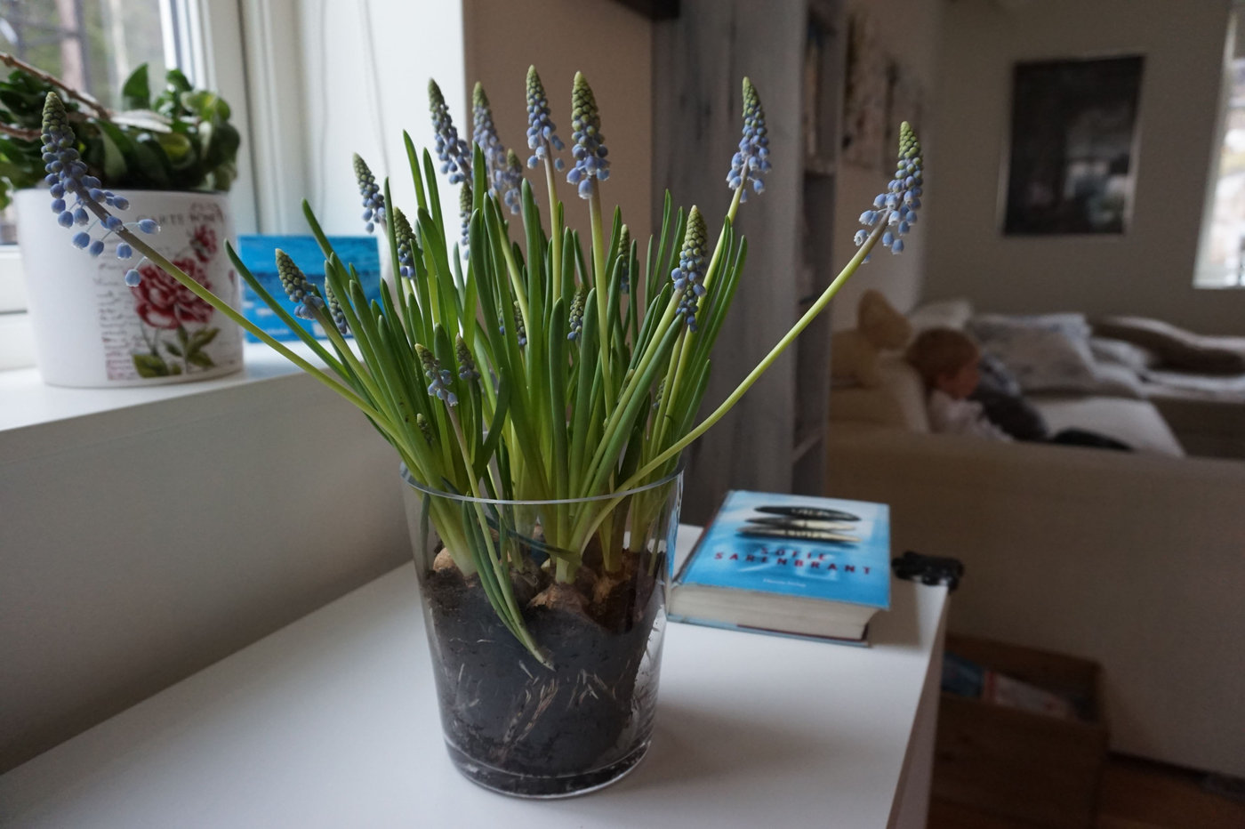 - Fredagsblommor: Vi har fina blommor som pryder hemmet. De här pärlhyacinterna har just slagit ut och av pappa fick vi fina röda och vita tulpaner idag. Älskar att ha färska, fina blommor i huset!
