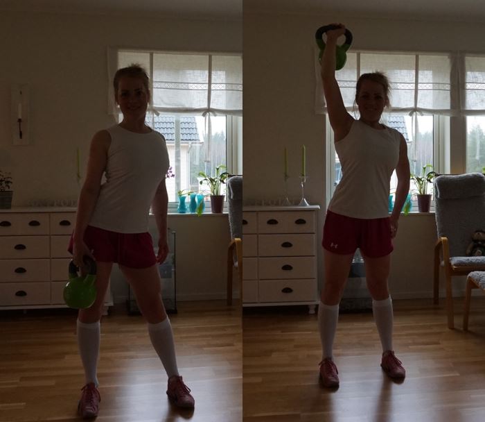 - Fredagsfys: Fredagar innebär att båda barnen är hemma och jag har därmed fullt upp med dem hela dagen. Eftersom jag får så mycket mer energi och bättre tålamod om jag har fått träna är det alltid värt att gå upp lite tidigare för att få till ett hemmapass på morgonen. Bara det att barnen lyckas nästan alltid vakna tidigare än de brukar när jag vill få till denna egentid så mitt fredagsfys sker allt som oftast med dem som sällskap. I morse blev det ett gäng övningar med kettlebellsen, men fick hålla passet ganska kort.
