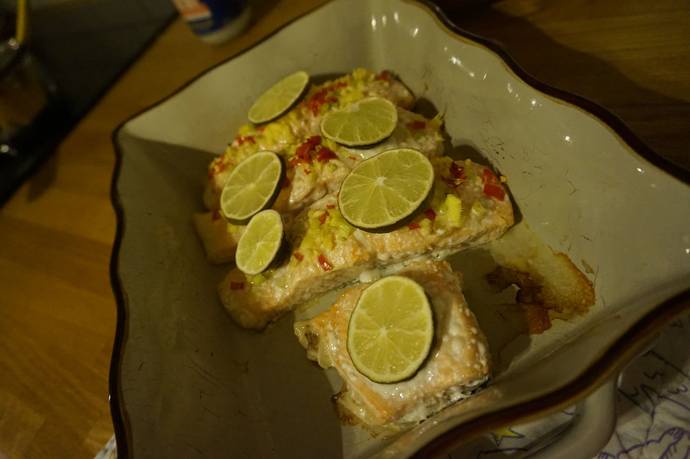 Limelax toppad med citrongräs, chili- och ingefärsschack