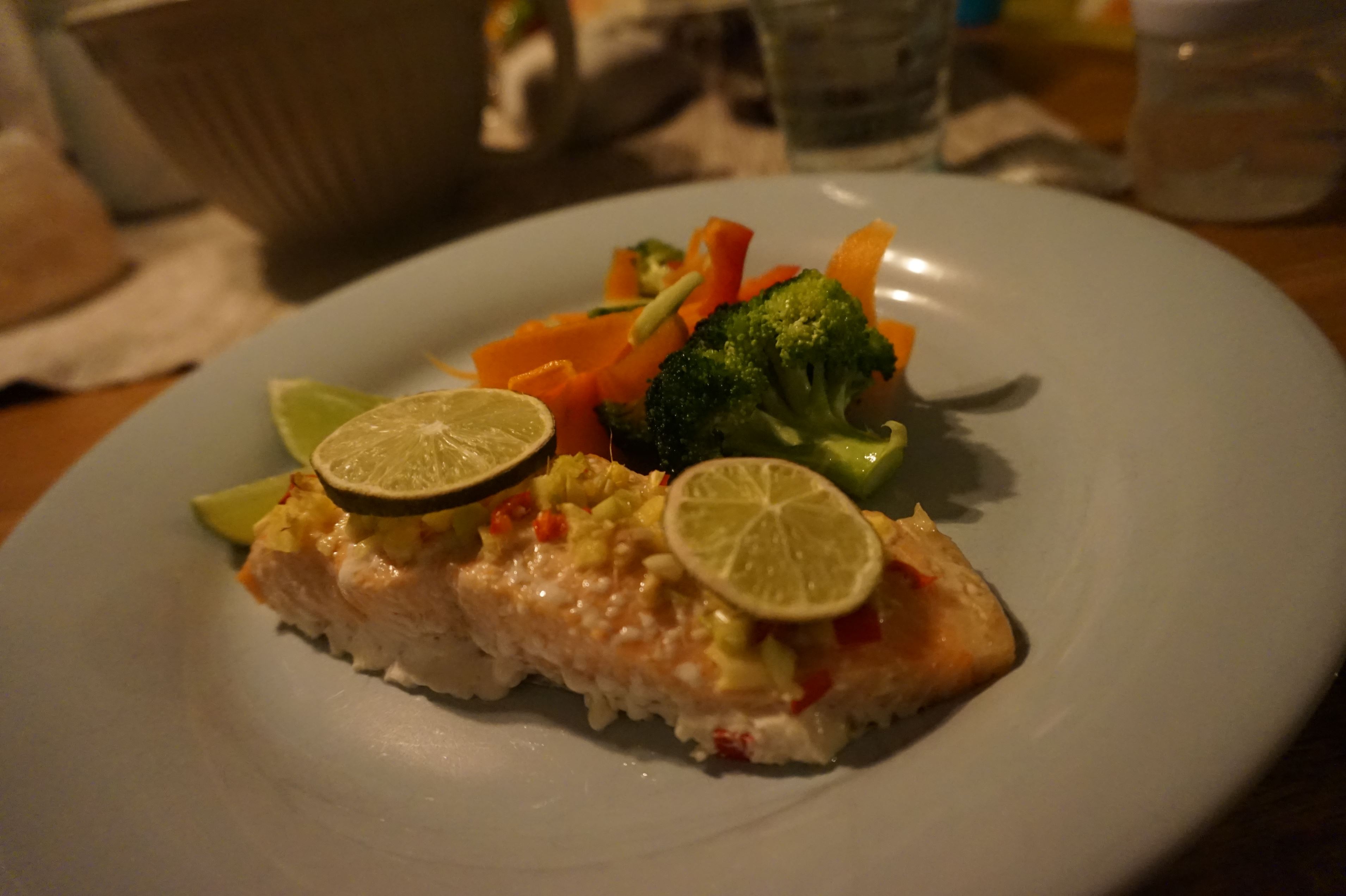 Sista maträtten i middagskassen som vi testat denna vecka var en laxrätt. En rätt som jag hade ganska höga förväntningar på. Det lät gott med alla smakerna som den skulle toppas med och jag gillade att det var många olika grönsaker som tillbehör. Den var inte riktigt så god som jag hade trott. Lite torr, men helt okej.