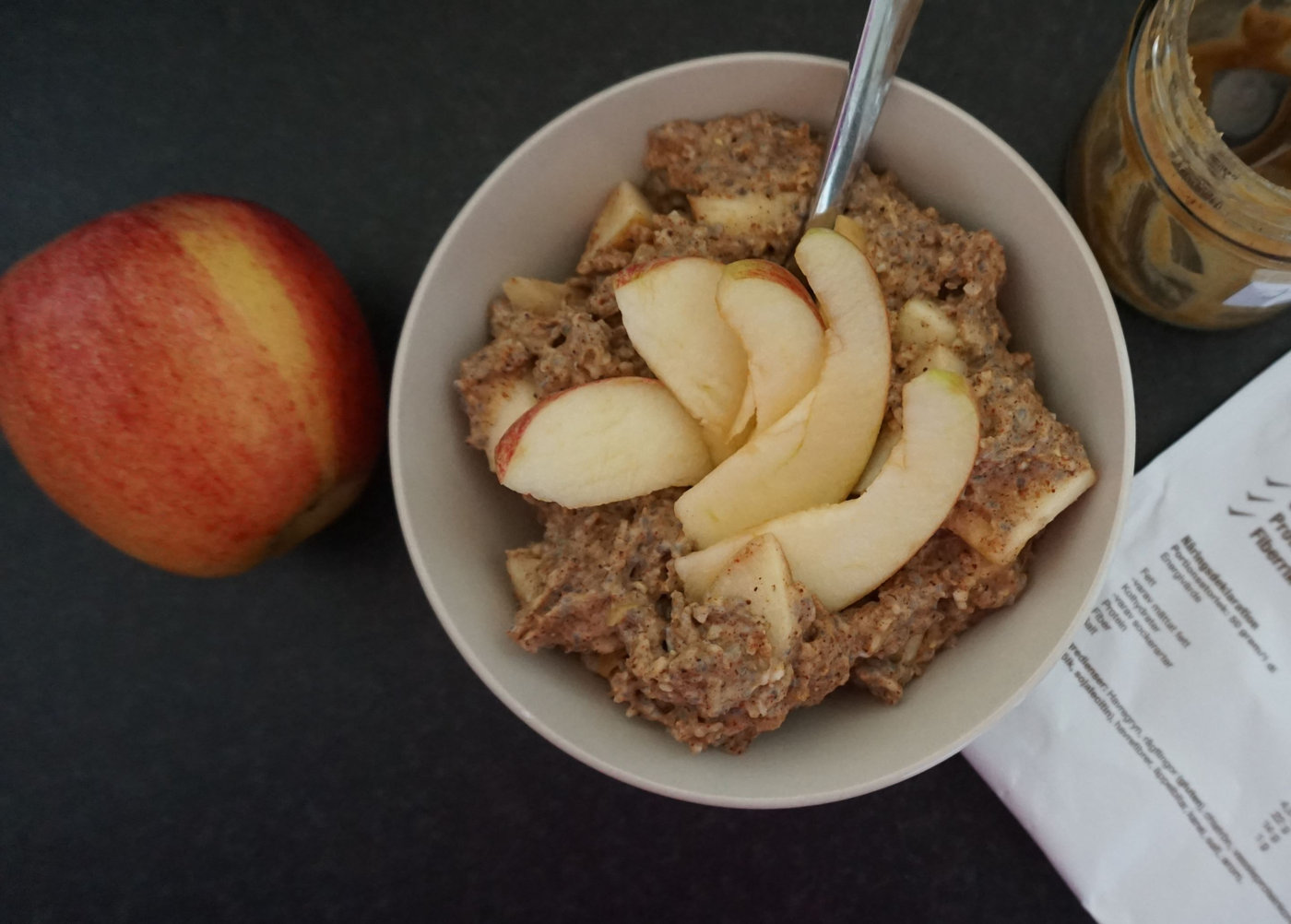 Att starta dagen med gröt passar bra när man är i fjällen. Den värmer och mättar gott, en bra grund för en heldag i backen helt enkelt. I morse kokade jag Orka proteingröt och pimpade den med kanel, äpple och nötsmör.