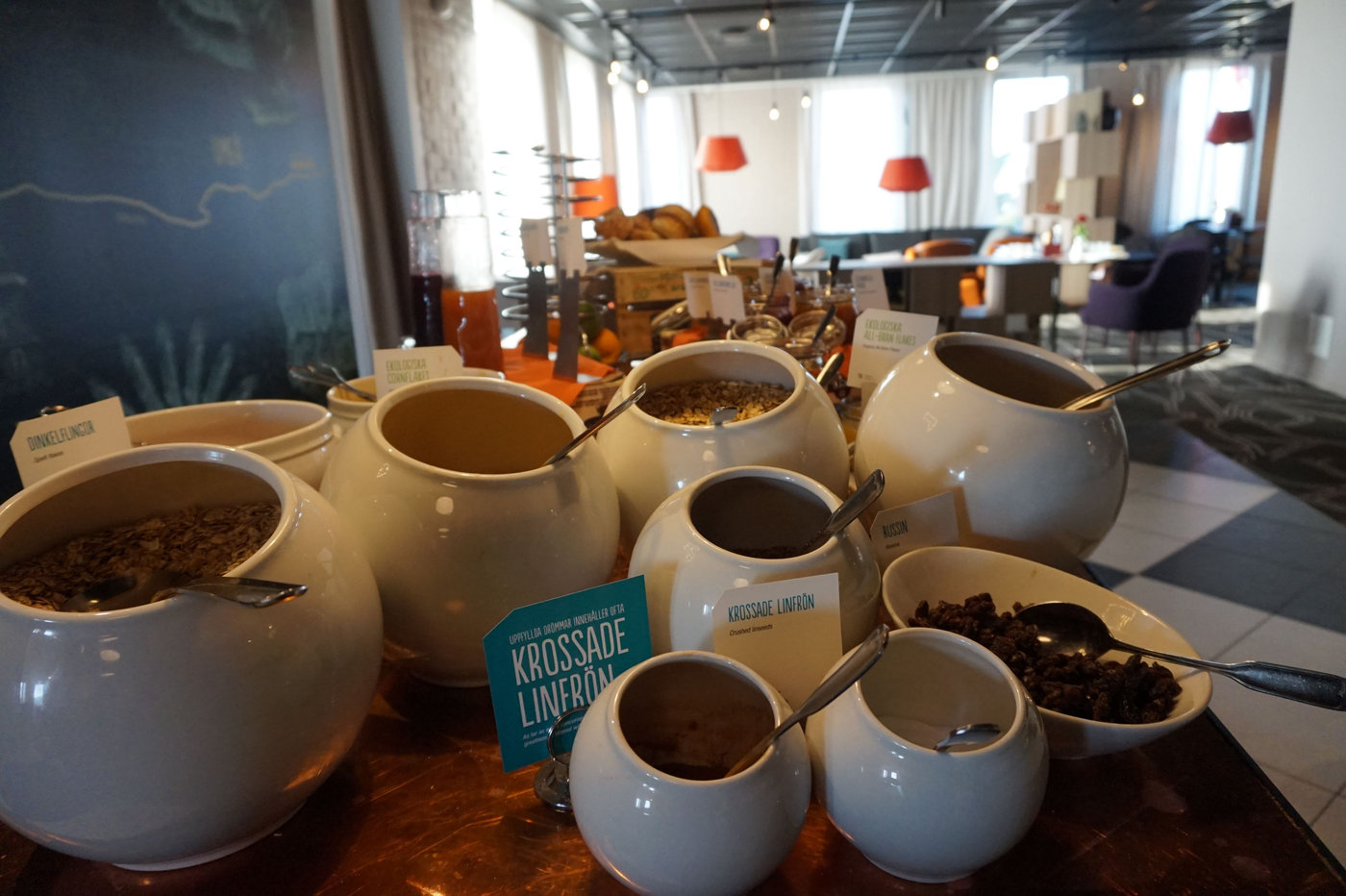 Så här såg det ut i morse när vi åt av frukosten på Scandic Sundsvall Nord. Fanns massor med gott att välja på och det bästa av allt var att vi var nästan ensamma i matsalen. Det var ett smart drag att åka hem på en måndag; lite folk på hotellet och få bilar på vägarna.