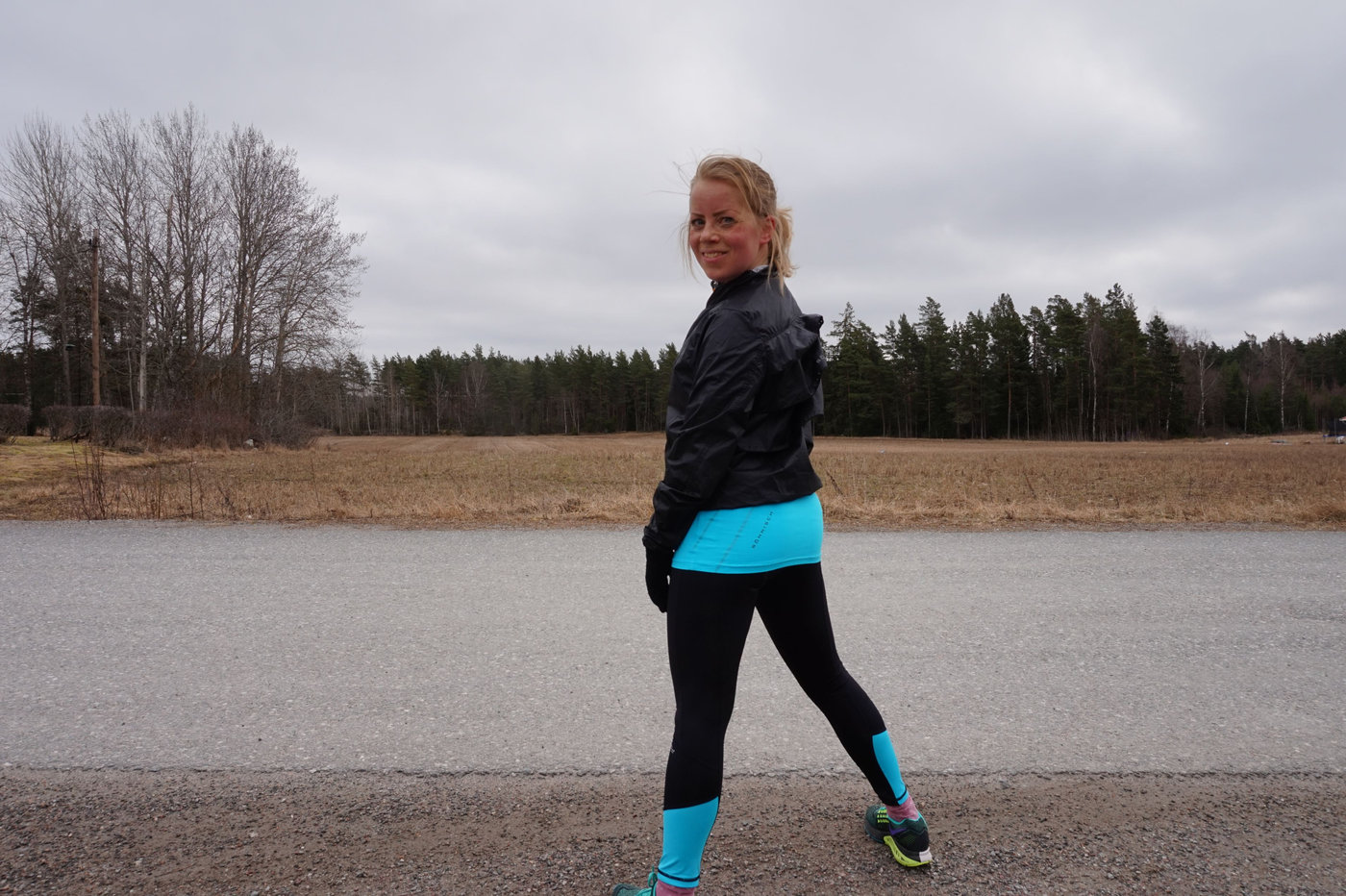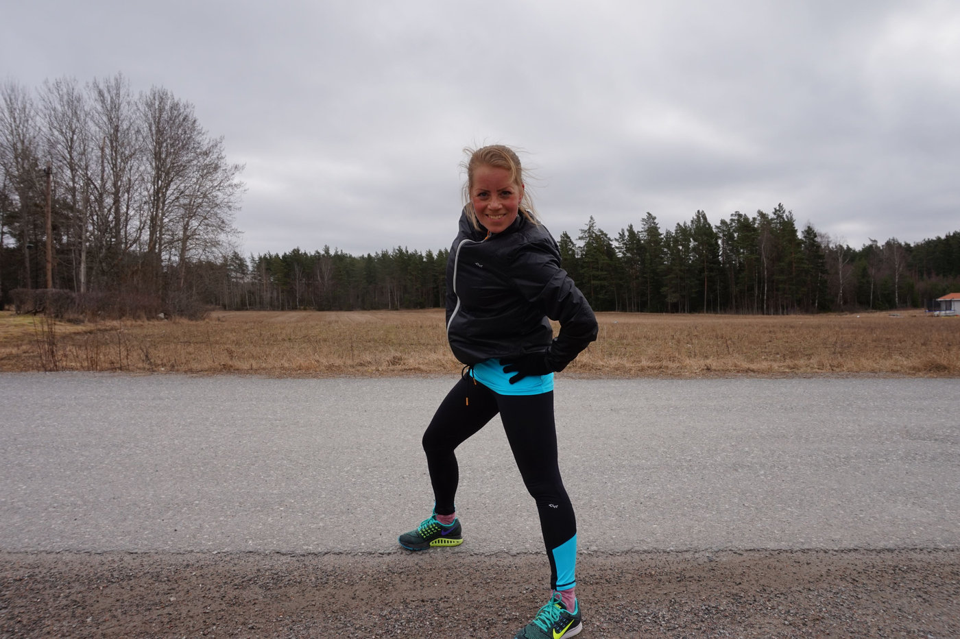 Dagens träningsoutfit: linne, löparjacka och tights från Röhnisch, skor från NIKE