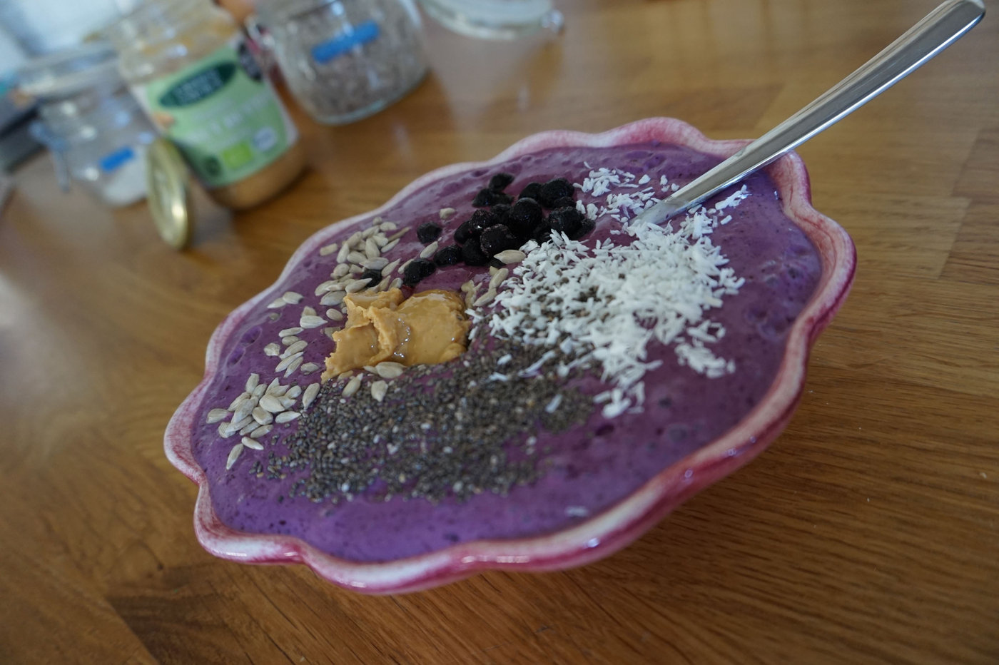 Gårdagens frukost var en riktig höjdare, både näringsmässigt och smakmässigt. Och inte var det svårt att göra denna blåbärsskål heller. Både jag och barnen gillade det väldigt mycket!
