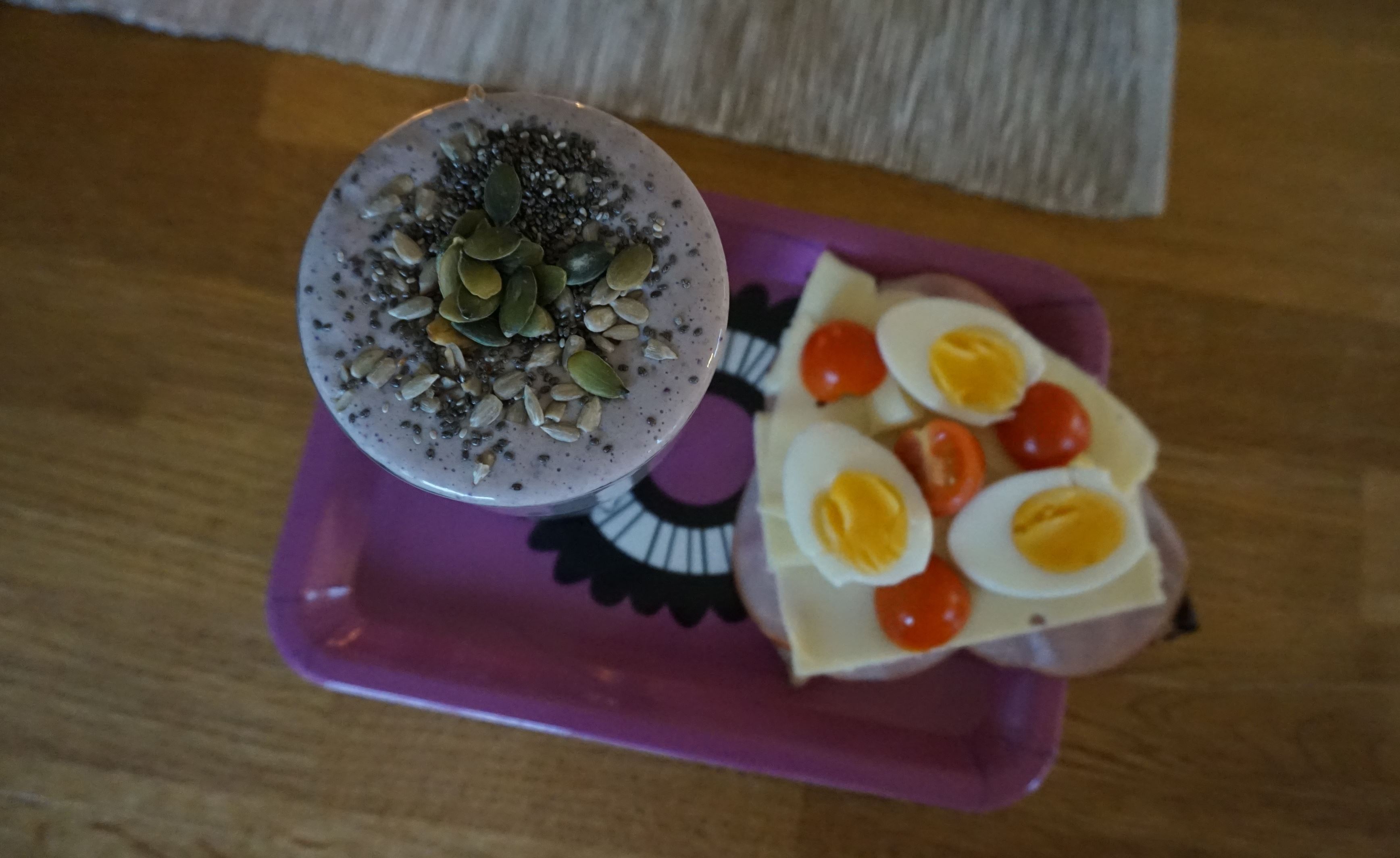 Bra som frukostar är annars smörgås med ägg och någon grönsak, en chiapudding (som gjorts dagen innan) med frukt och bär eller en burk kvarg med frukt och lite granola eller havregryn.
