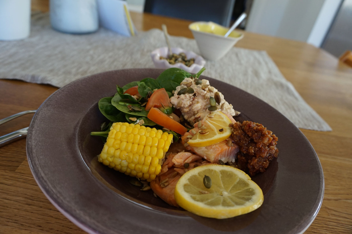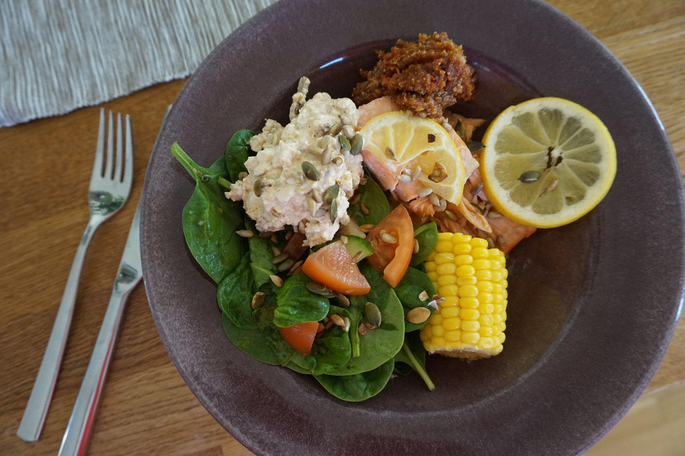 När jag ändå var igång med att rosta frön hällde jag också på pumpafrön. Alltid lika gott att strö rostade frön med flingsalt över maten!