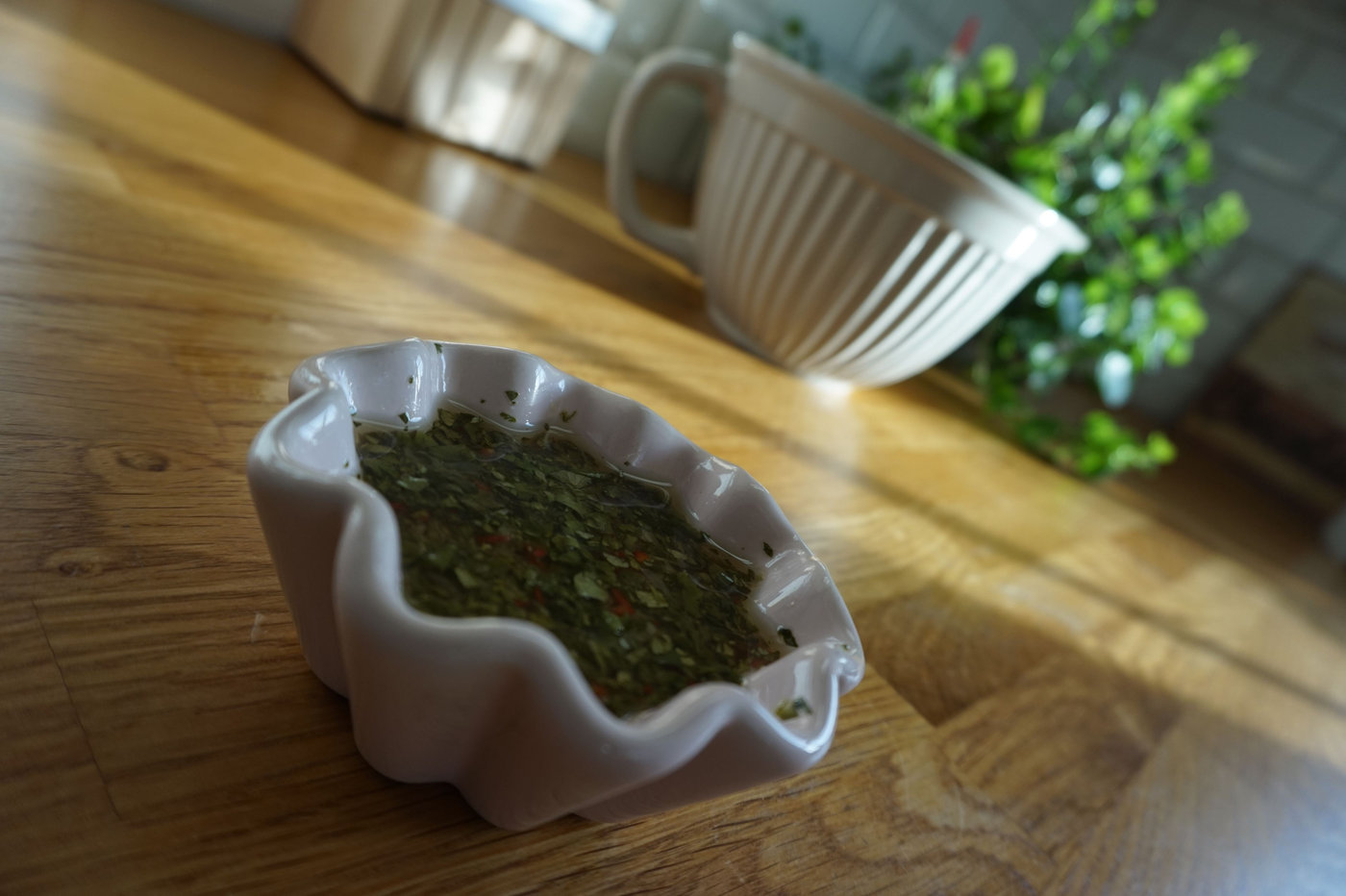 Receptet på kvällens dressing kommer från Tasteline. Jag hällde den på salladen med tomat, gurka, bladspenat, avokado och ärtor.