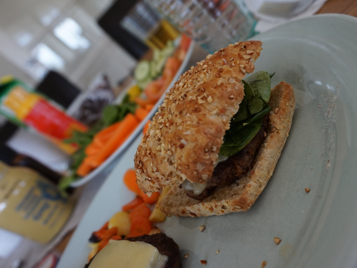 - Lagat hamburgare och ätit med Fazers goda rotfruktsbröd.
