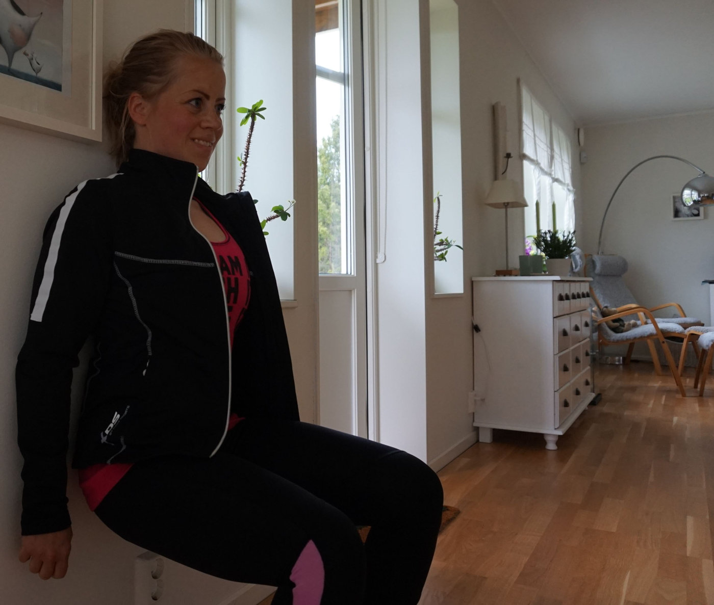 Men att sitta länge i jägarvila direkt efter ett backintervallspass var jobbigare än jag trodde. Låren var liksom redan möra… Idag orkade jag ”bara” sitta i tre minuter innan jag gav upp. Inte så länge med tanke på mitt rekord på nio och en halv minut så jag får kämpa vidare en annan gång.