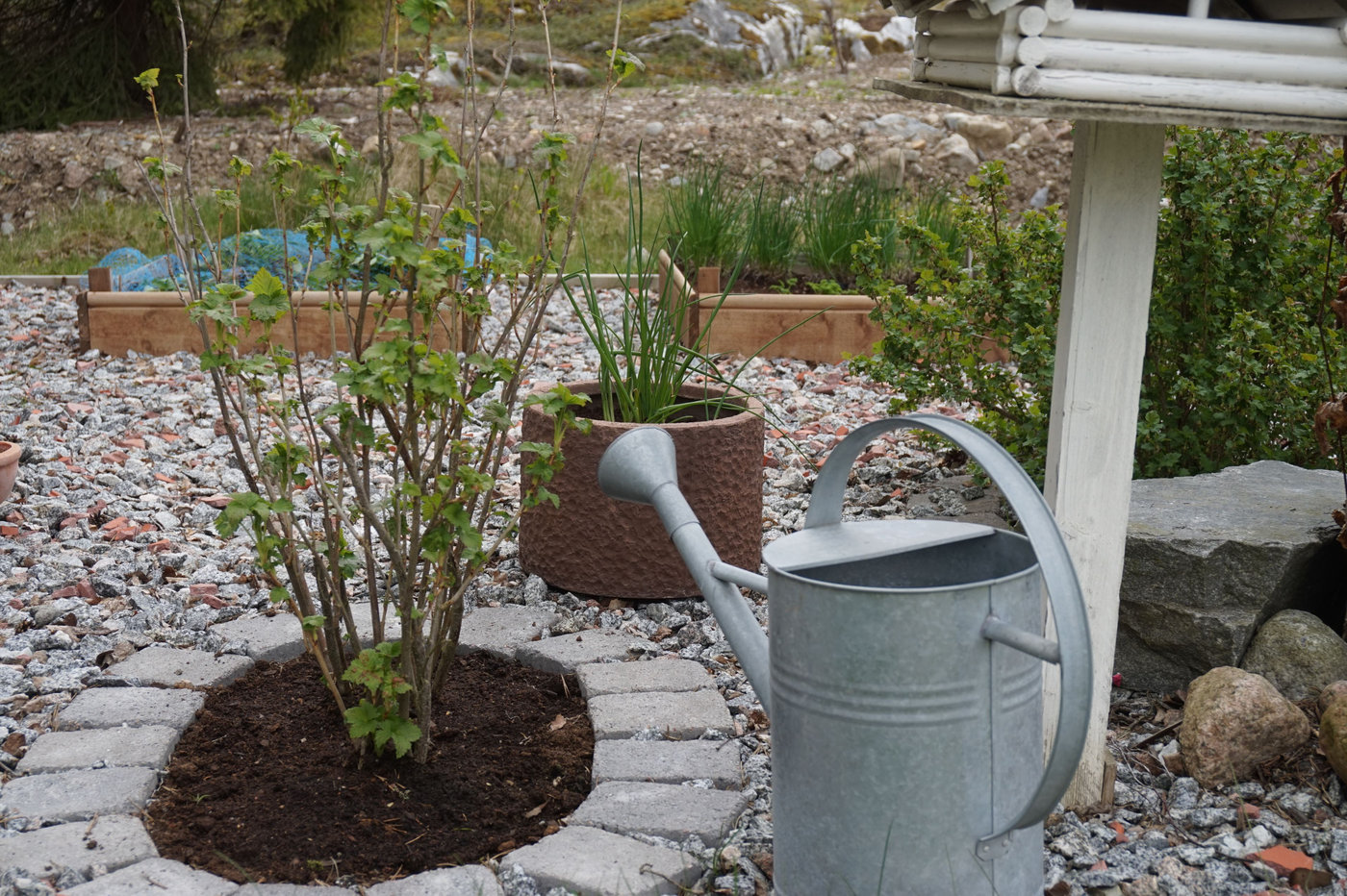 Svartvinbärsbuskarna är också på G och idag planterade jag om hallonbuskarna så att vi förhoppningsvis också ska kunna få njuta av sådana bär längre fram.