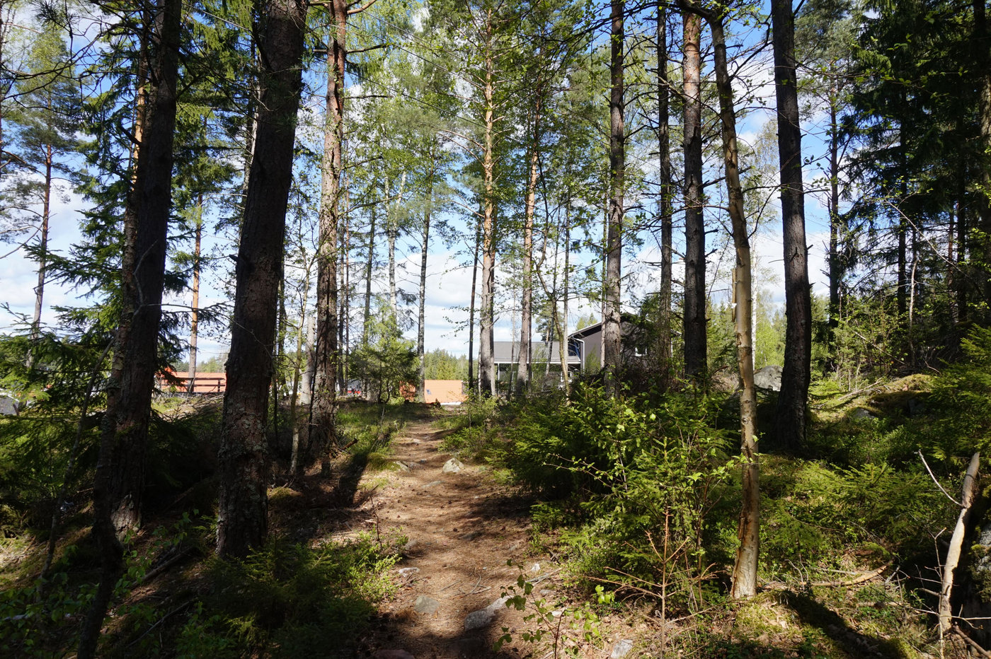 Tänk. Vi har skogen inpå husknuten och ändå är vi där så sällan. Det är som att den är för nära för att vi ska utnyttja den så mycket som vi borde. Att vi liksom tar den för givet och så glömmer vi bort att gå in och njuta av den. Det brukar bli några vändor på sensommaren för att plocka blåbär och lingon och någon gång på hösten för att leta kantareller. Men annars är det bara sporadiskt någon gång ibland. Den lilla skogsglänta som ligger precis intill vår tomt besöker vi i och för sig typ varje dag, men den lite större delen av skogen, där man kan vandra på stigar, den är vi alldeles för sällan i.