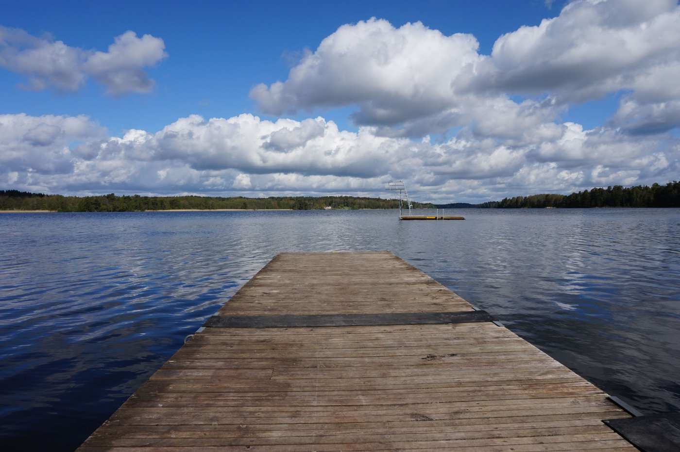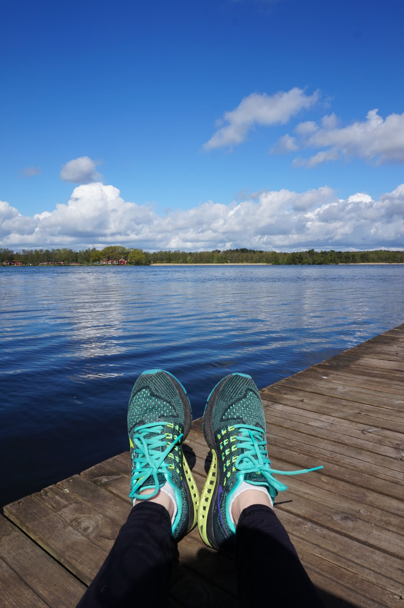 Jag satt på bryggan en stund och tittade ut över allt det blåa. I sommar hoppas jag på många bad vid just den här sjön. Eftersom jag inte kunde bada någonting förra sommaren på grund av att jag nyligen blivit snittad så ser jag så mycket fram emot många bad denna sommar istället. Tänk att få springa bort till stranden och hoppa i innan svetten har torkat! Eller att åka med hela familjen till stranden för en heldag med bad, sandslottsbygge, picnic och lek med boll.