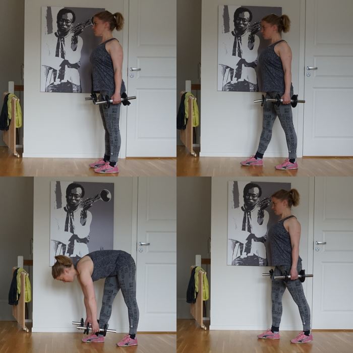 Tips: Försök att ha ganska så tunga vikter/kettlebells då ryggen är stark, men se till att bibehålla tekniken.