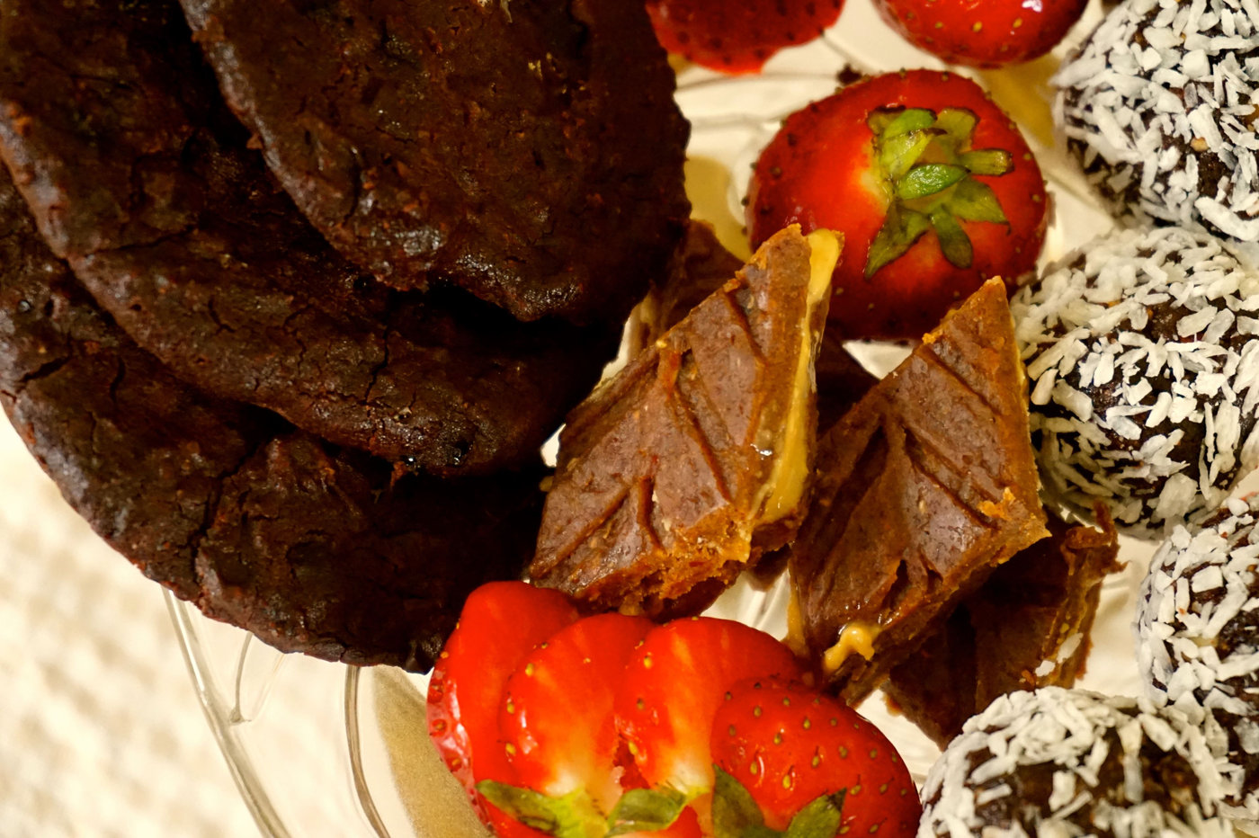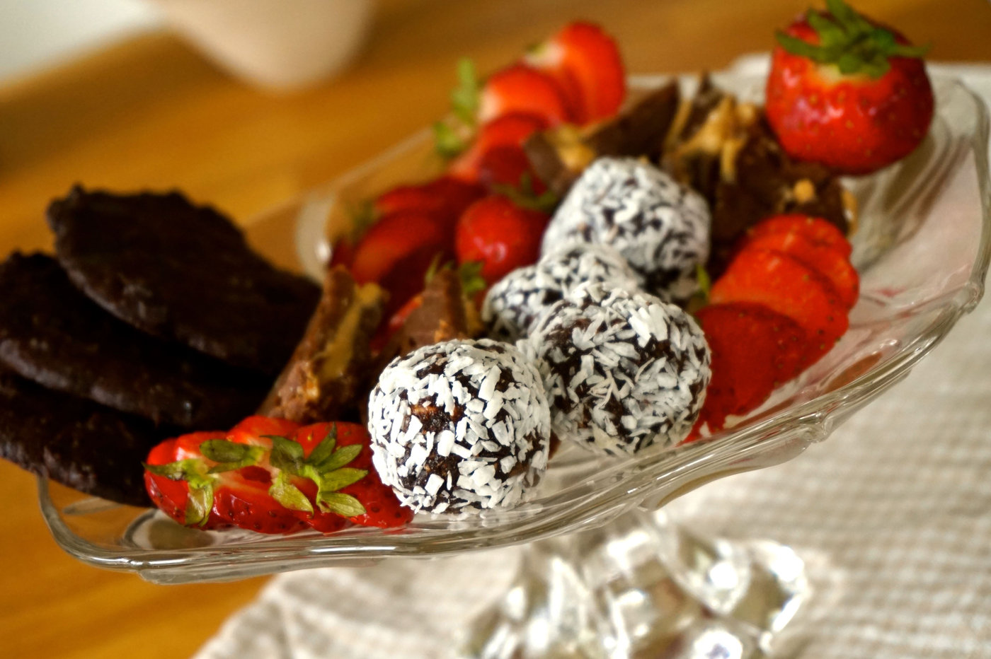Det finns så mycket gott att njuta av utan att det behöver innehålla något socker. Till ikväll plockade jag fram lite ur frysen, gjorde lite nytt gotte samt skar upp några jordgubbar och satte ihop ett trevligt fat att plocka från. Sockerfritt godis när det är som bäst!
