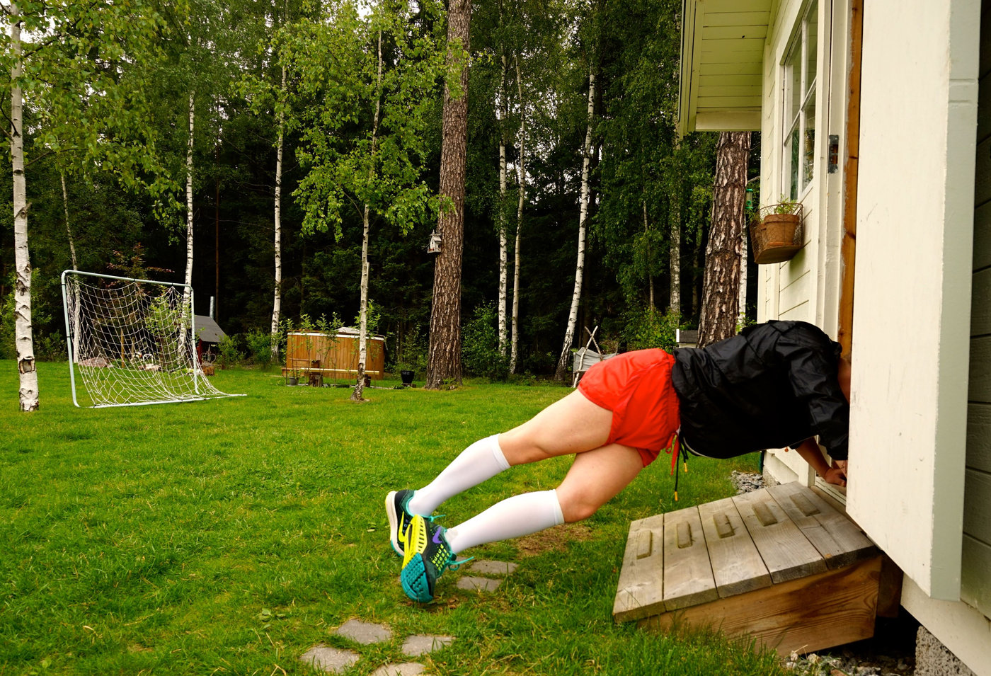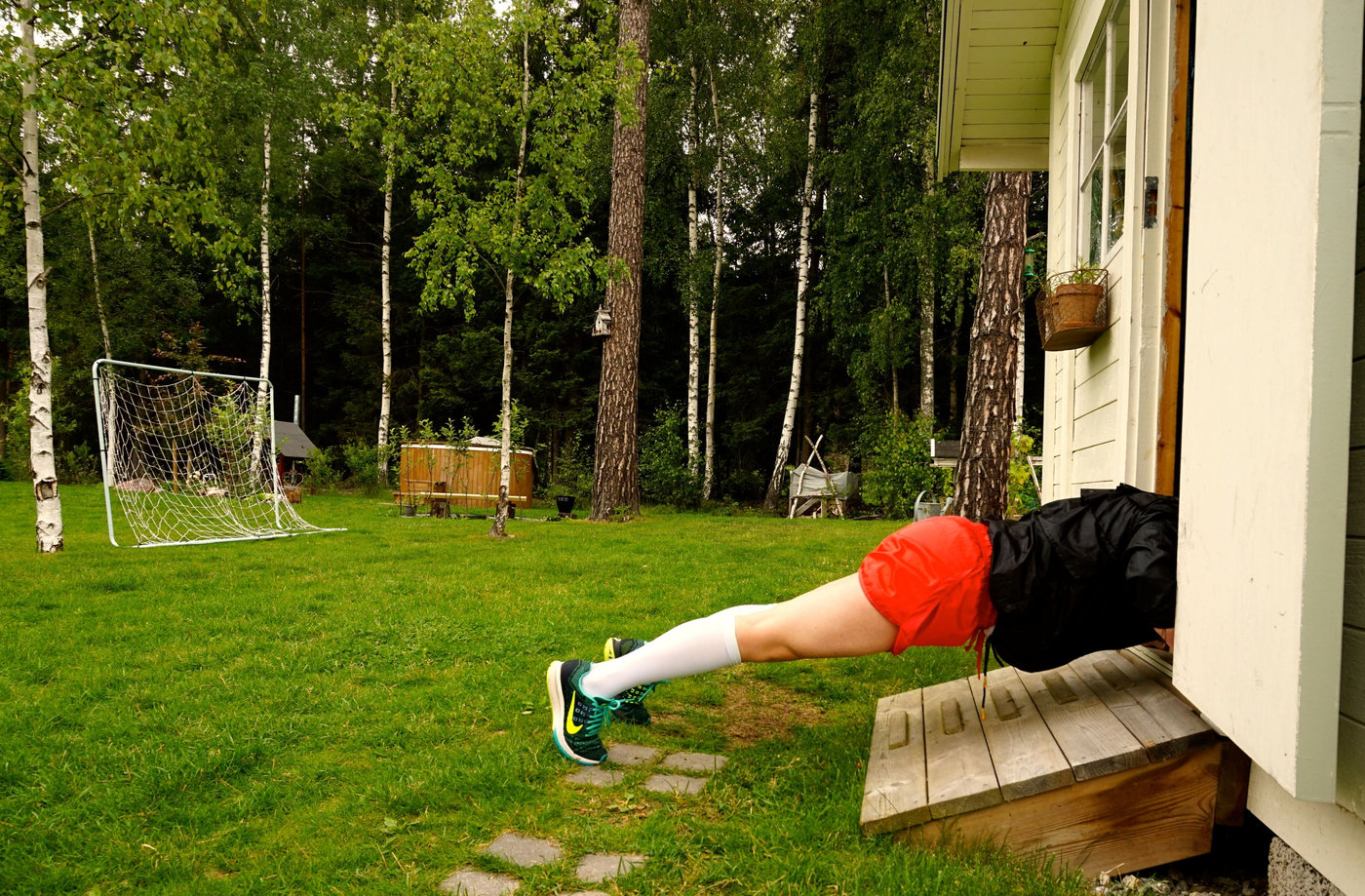 - Ner direkt i en burpee , det vill säga jag hoppade ner i en armhävning.