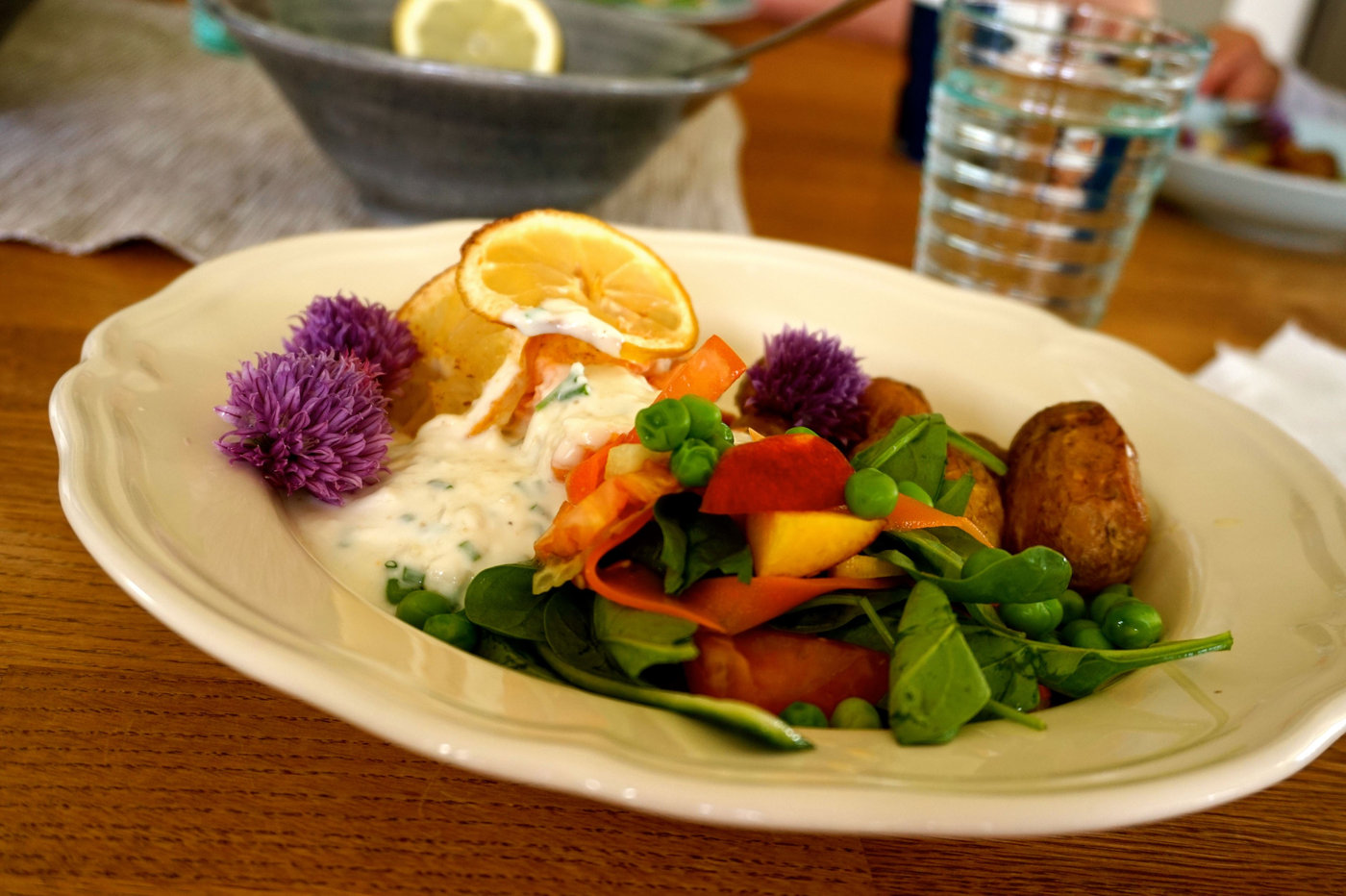 DSC02087Det blev en sådan där riktigt somrig tallrik till vår lunch. Fast visst passar det att äta sådan här god mat även på vintern.