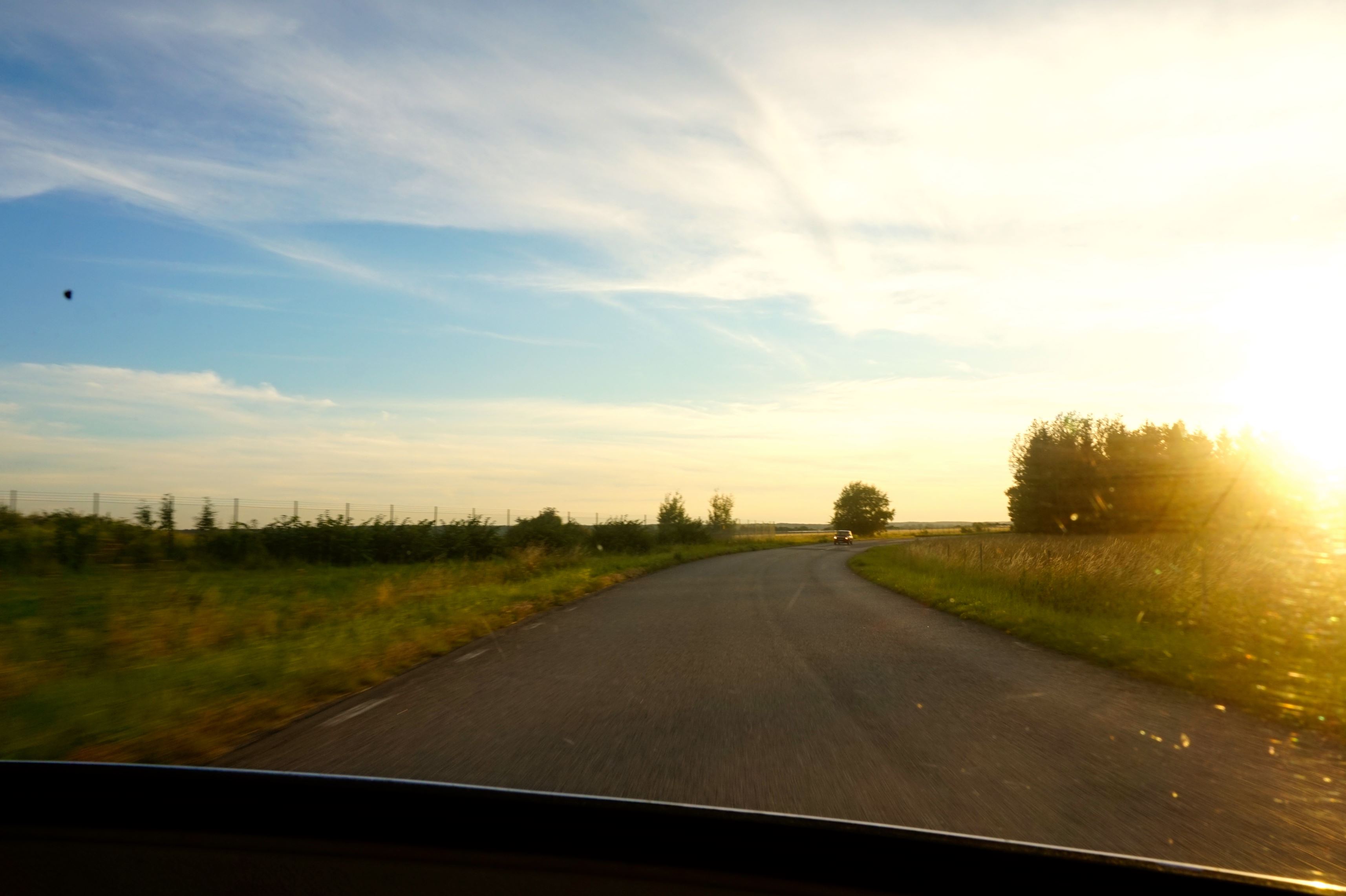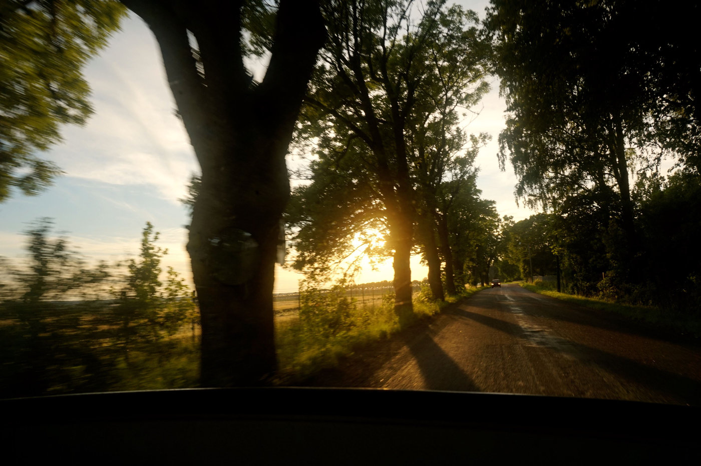 När vi åkte därifrån var solen på väg ner. Den höll oss sällskap första biten medan vi skumpade hem i den charmiga gamla amazonen.