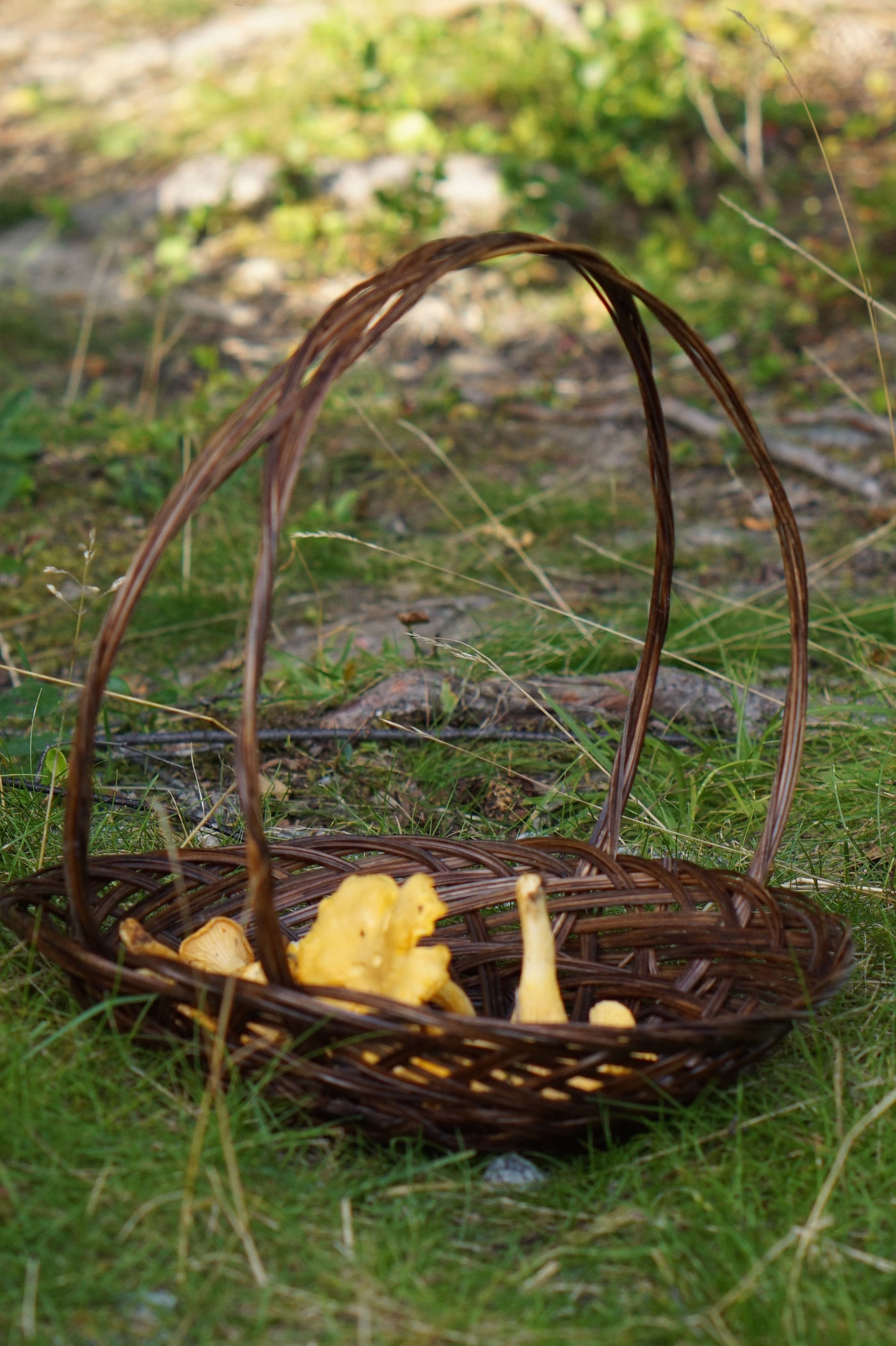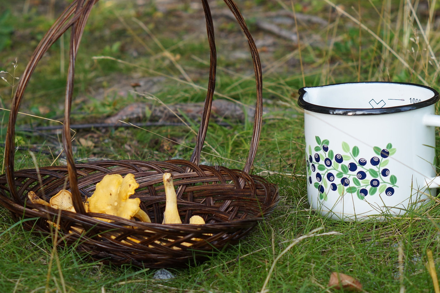 Vi gick in i skogen för att leta kantareller och vi fick leta ganska länge innan vi hittade några. Blåbär fanns det gott om, men svampen verkar ha plockats redan. Vi har nämligen sett både grannar och andra människor gå in i skogen intill oss och komma ut igen med stora kassa, antagligen fulla med kantareller. Vi är inga svampexperter och är antagligen ute i alldeles för sen tid när vi gick in i skogen på svampjakt först idag.