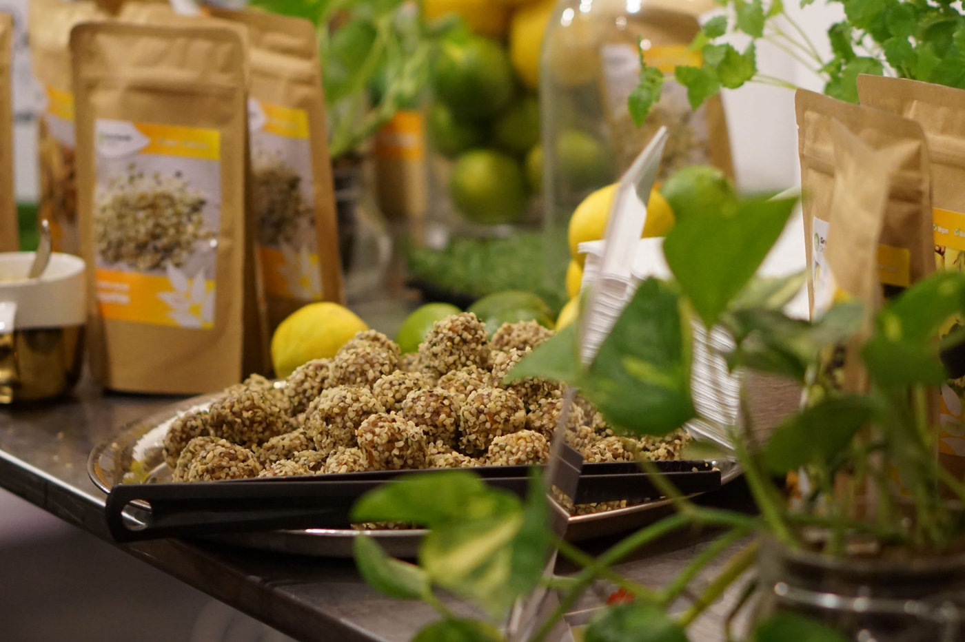 Great Earth bjöd på fräscha och goda rawbollar. Nu minns jag inte exakt vad de innehöll, men det jag vet var i alla fall att de innehöll baobabpulver, ett nytt pulver på marknaden. Utöver det var det hampafrön och citron i bollarna. De smakade verkligen super fräscht och gott av citronen!