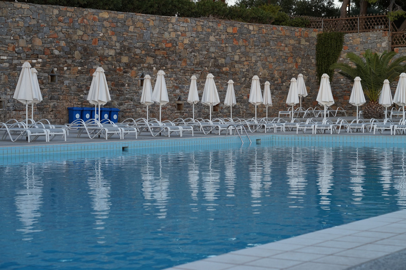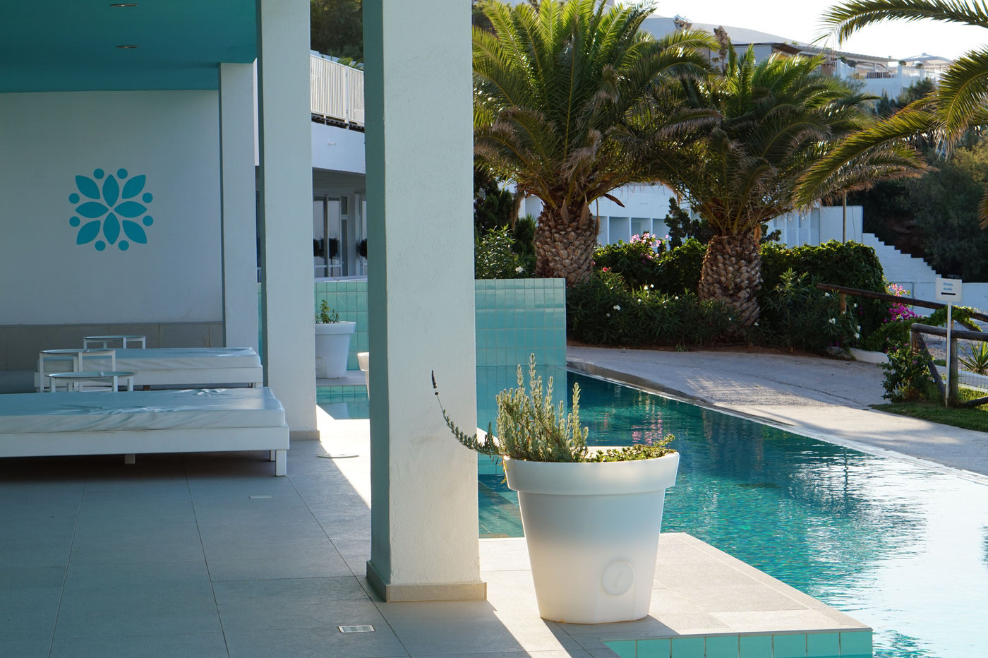 Utanför fanns en inbjudande pool och där inne en spaanläggning och ett fräscht gym som hade allt man kan tänka sig.