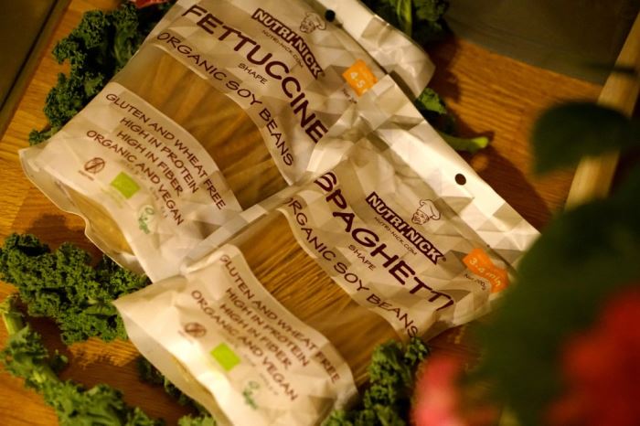 Sojabönpastan från Nutri Nick finns som vit och svart spagetti samt vit och grön fettuccini. De är tillverkade av ekologiska sojabönor och vatten och är alltså både veganska och glutenfria.
