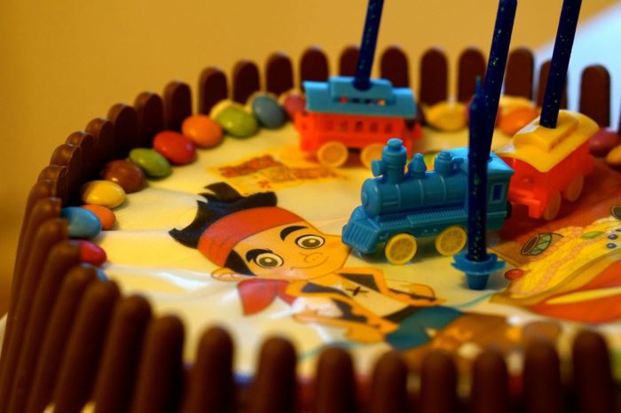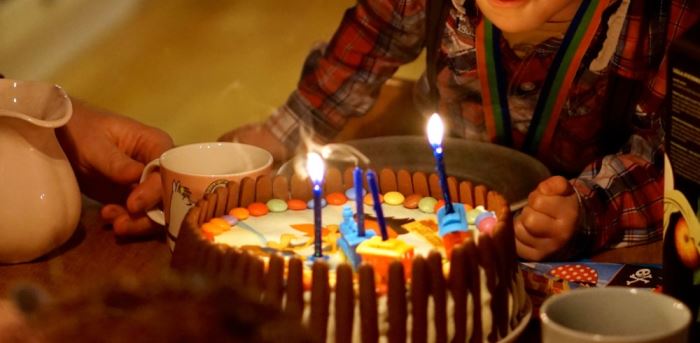 Tårtan var såklart en pirattårta, precis som förra året, och han var med och satte ljusen på tårtan.