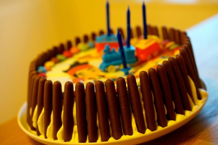 Han blåste ut alla fyra ljusen och sedan fikade vi den goda tårtan.