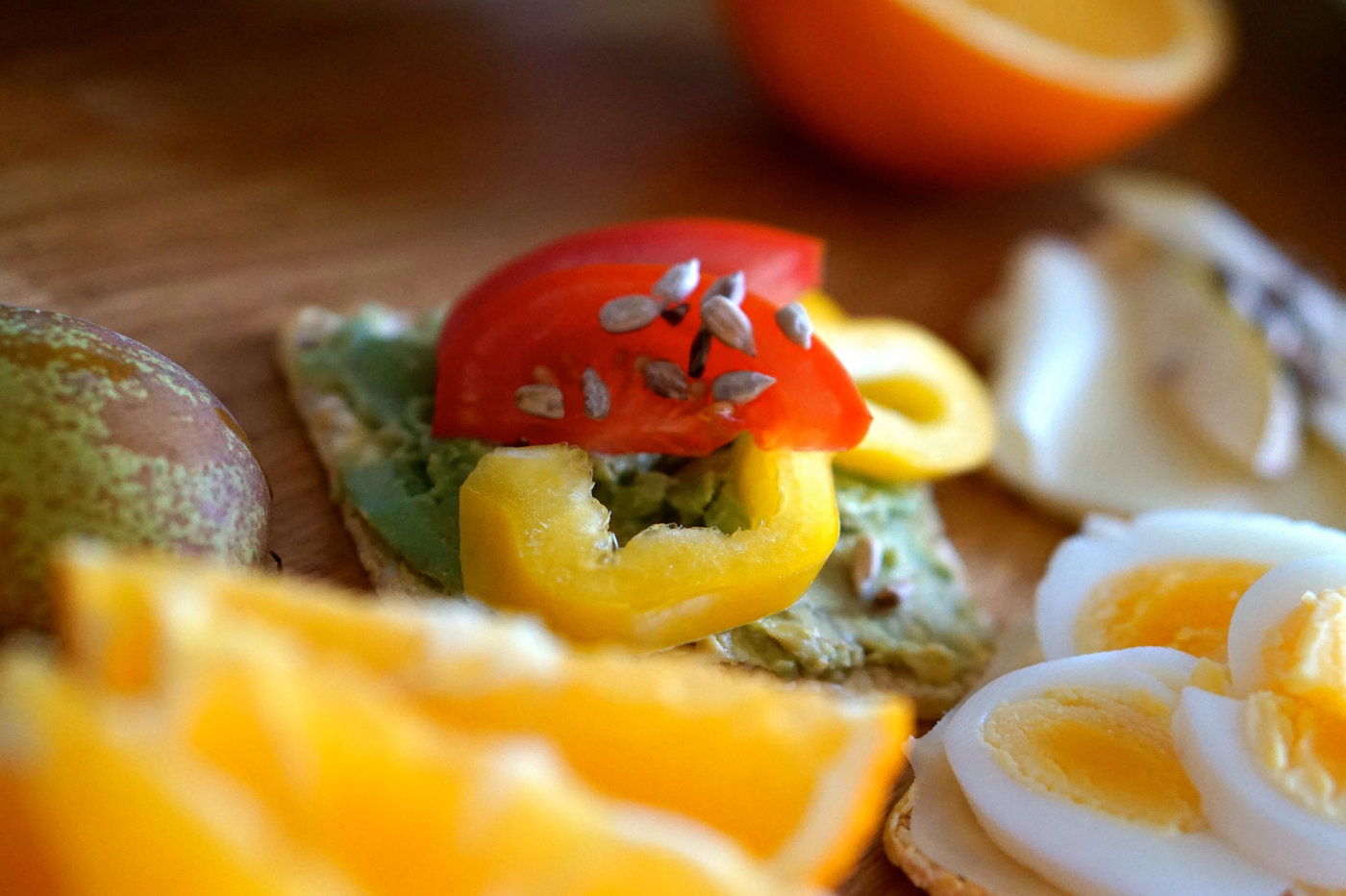 På en annan bredde jag mosad avokado och lade paprika samt tomat över.