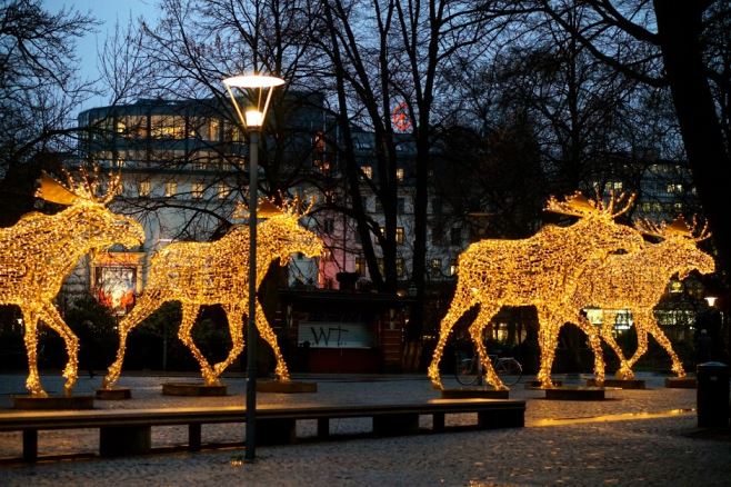 En morgon förra veckan unnade jag mig en längre promenad i staden – en morgonpromenad i juletid. Det var fint att få gå där medan det ljusnade. Trots att det regnade och egentligen borde ha varit snö som kom ner så fick jag mig en dos med julstämning.