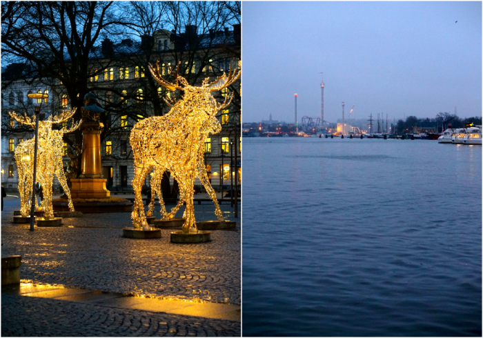 Man kan tycka vad man vill om den väderlek vi har nu. Visst hade det varit mysigare med snö och minusgrader, men jag tänker inte låta vädret påverka min julstämning. I staden är det så vackert nu med all belysning, granar och andra juldekorationer. Allra finast är det på morgonen medan det ljusnar och det varma skenet från belysningarna sprider sitt ljus i allt det blåa och lite ruggiga.