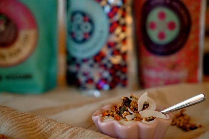 Barnen testade också granolan. Smilla gav tummen upp medan Wilmer hellre ville ha havrekuddar och corn flakes.