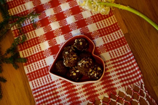 Grundreceptet för pepparkaksbollarna kommer från mina underbara nutellabollar. Men istället för kakao hade jag i pepparkakskrydda. Och så rullade jag dem i hackade hasselnötter och mandlar. Missa inte att göra dessa till jul!