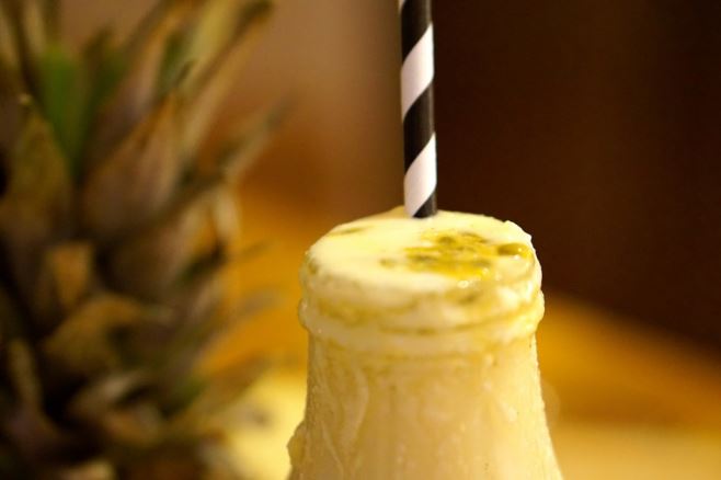 Att vara bloggare har många fördelar. En av dem är de fina, trevliga och goda bud som kommer hem till en. Härom veckan fick jag ett trevligt bud från Alpro med en grym mixer, ett gäng med fräscha frukter och ett antal olika drycker, som soja- och mandelmjölk. Jag gjorde en grön smoothie dagen efter, som det smaskades på hemma vid köksbordet. Några dagar senare gjorde jag en ananassmoothie av de frukter som var kvar. Den smoothien tänkte jag berätta om här.