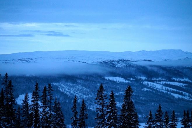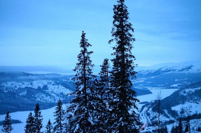 Att liftarna stänger redan klockan tre på eftermiddagen här i Åre är visserligen i tidigaste laget och jag hade gärna kunnat åka någon timme till i backen. Men å andra sidan är det också mysigt att komma hem till lägenheten innan det har mörknat helt. Då hinner vi njuta av en fin utsikt på eftermiddagen och får se när skymningen faller över Åresjön.