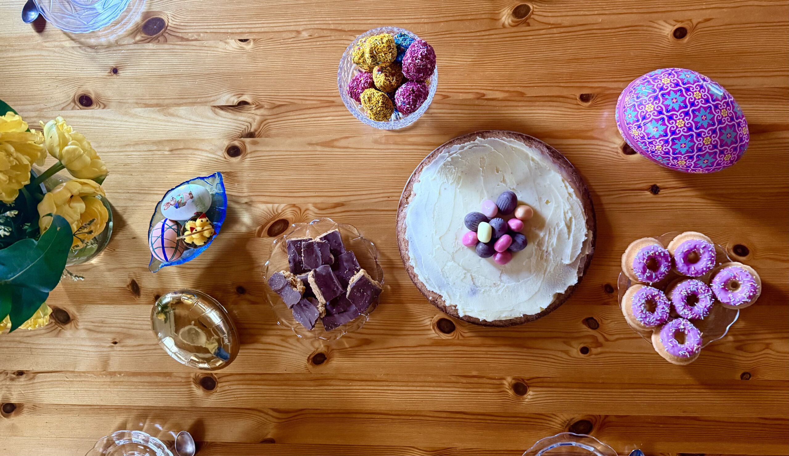 Dessa färgglada och fina chokladbollar gjorde jag nu till påskhelgen och vi hade med oss dem till stugan. Det härliga med dem är att de både är goda och inte innehåller något raffinerat socker.